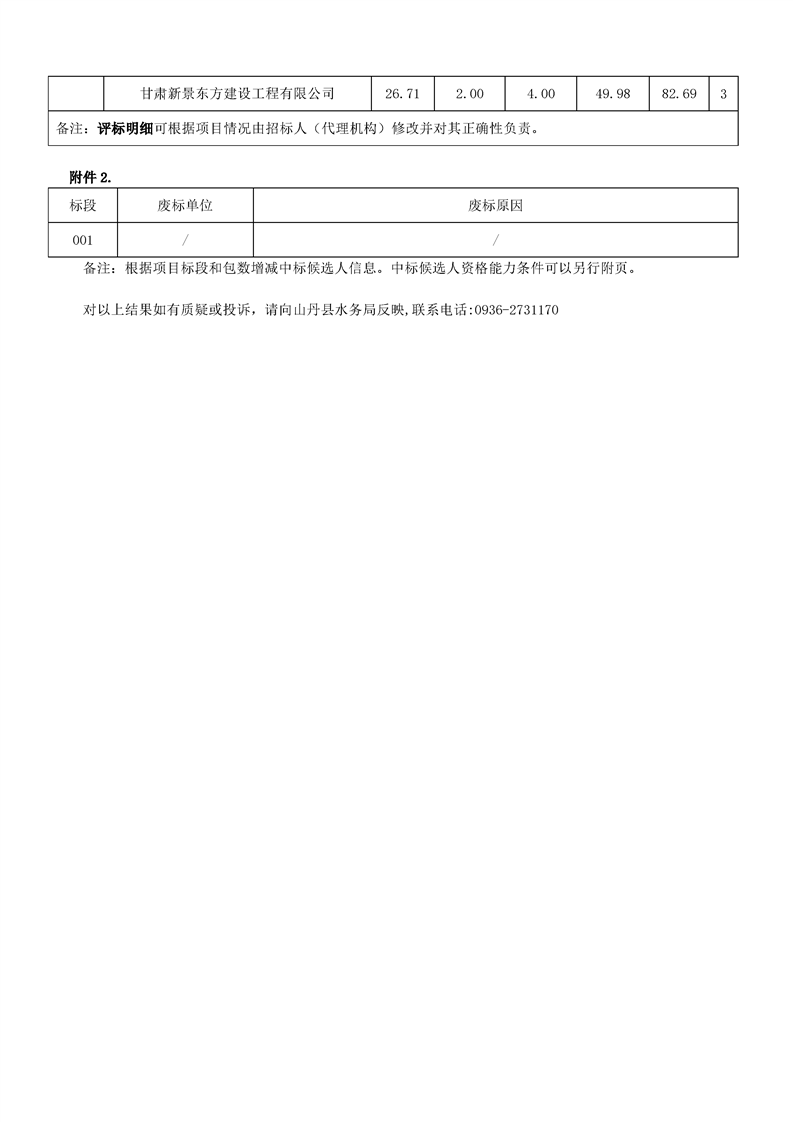 甘肃/张掖 中标结果