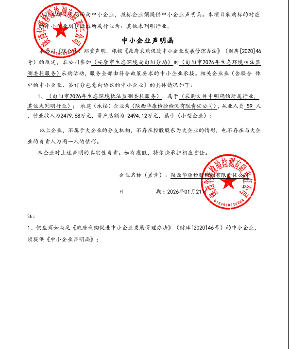 旬阳市2026年生态环境执法监测委托服务中标(成交)结果公告