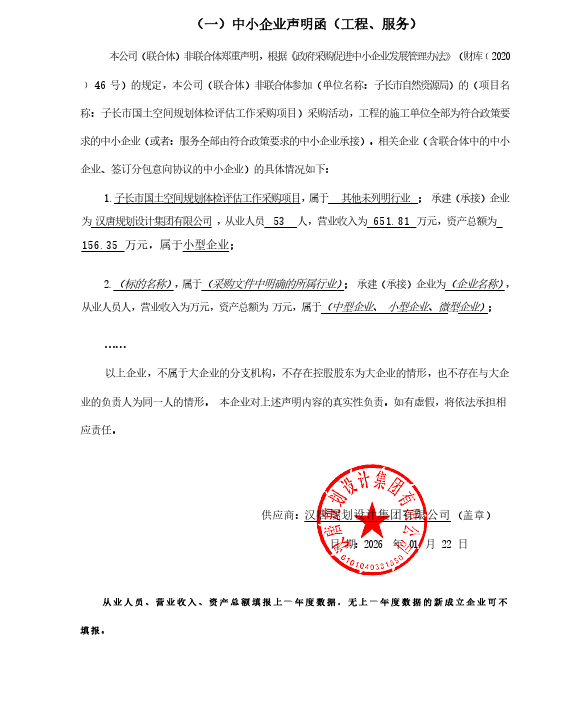 | * | 其他服务 | 子长市国土空间规划体检评估工作 | 子长市国土空间规划体检评估工作 | 需满足采购人使用的要求 | 合同签订后**日历天 | 符合国家、省、市及地方现行有关行业规范标准。 | ***,***.** |