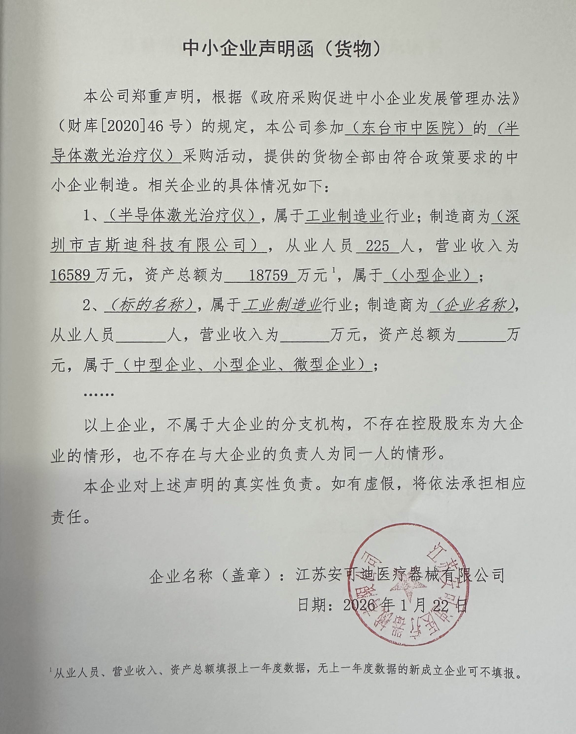 * | 江苏安可迪医疗器械有限公司(小微) | **.** | **.** | **.** | * |