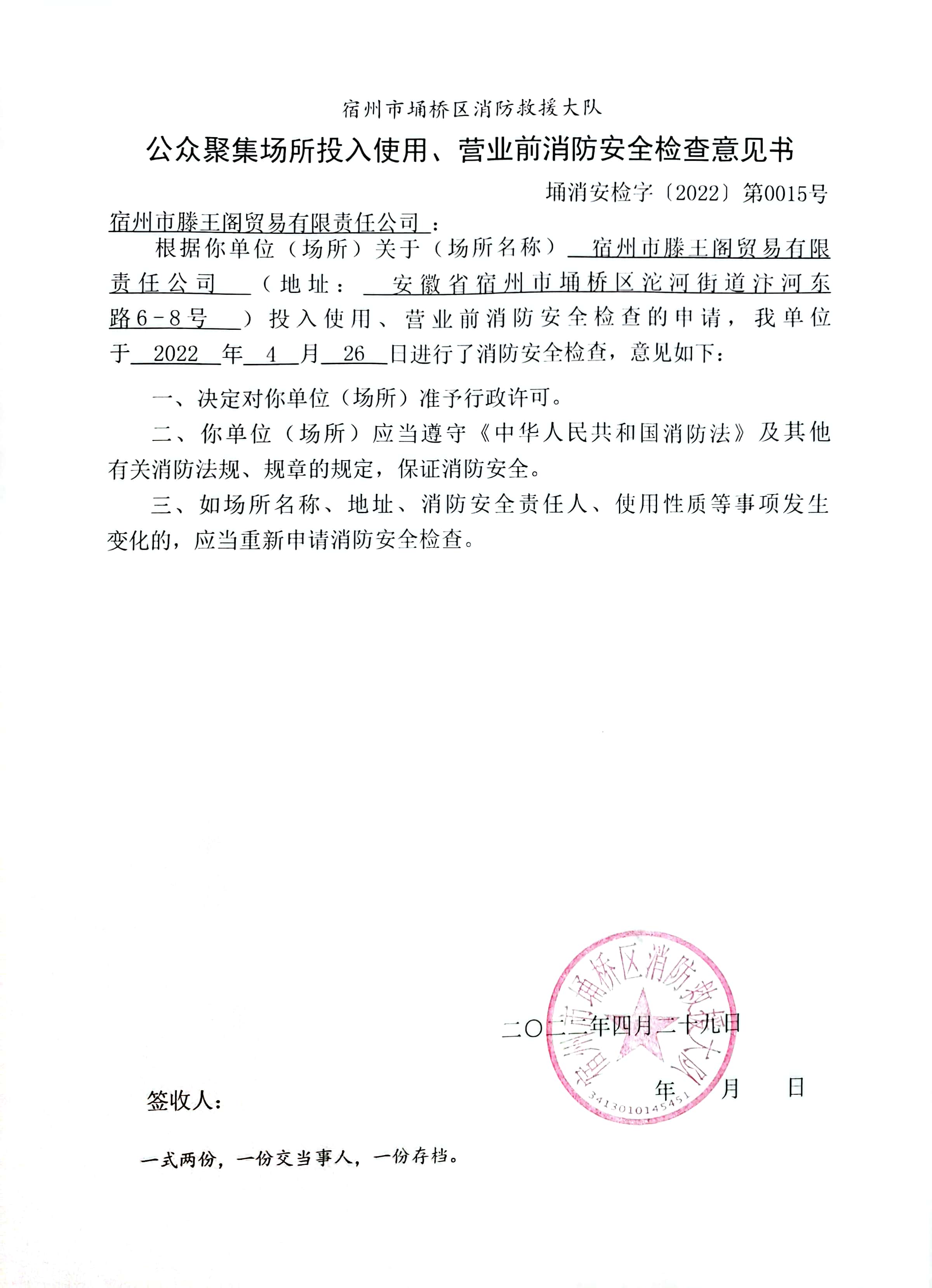 其他要求:宿州市滕王阁贸易有限责任公司申请文件.*** ***元