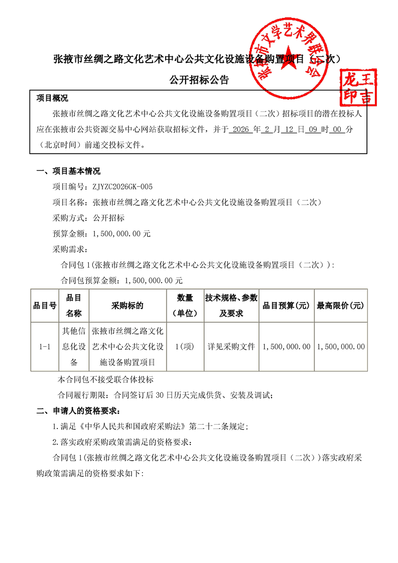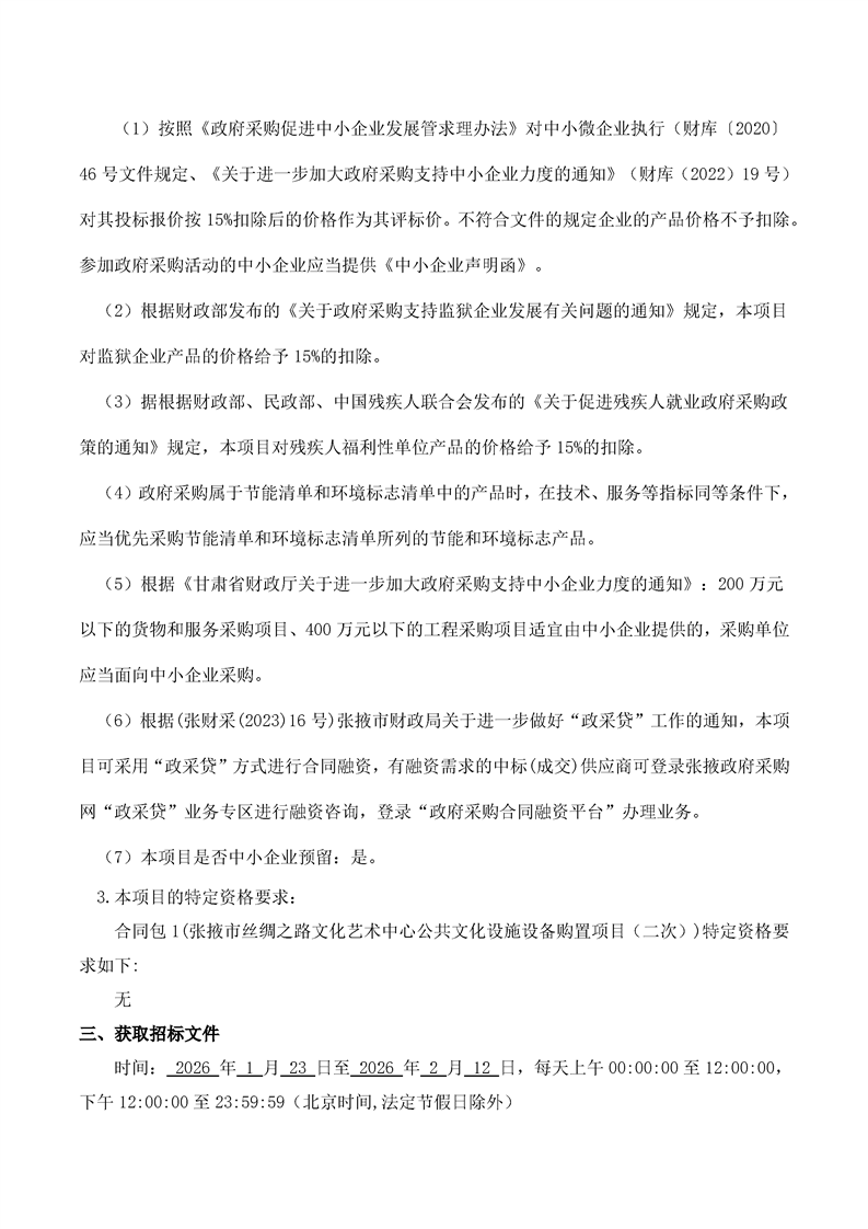 张掖市丝绸之路文化艺术中心公共文化设施设备购置项目(二次)公开招标公告采购/资审公告