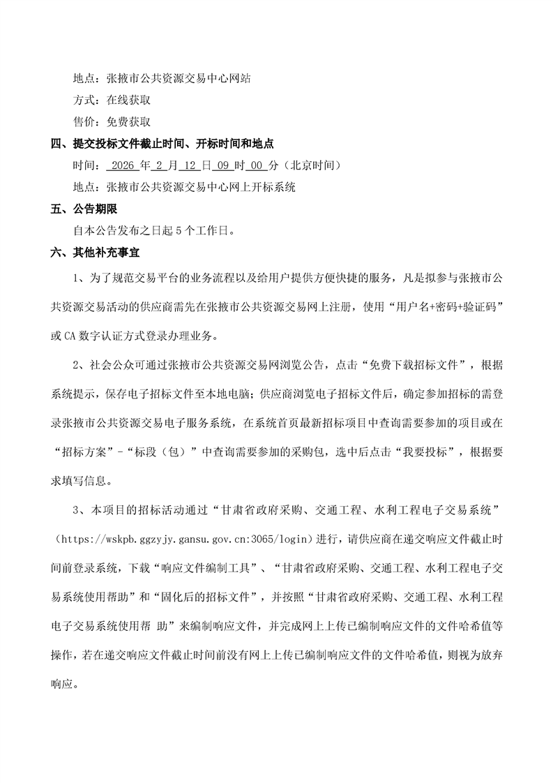 甘肃/张掖 招标采购