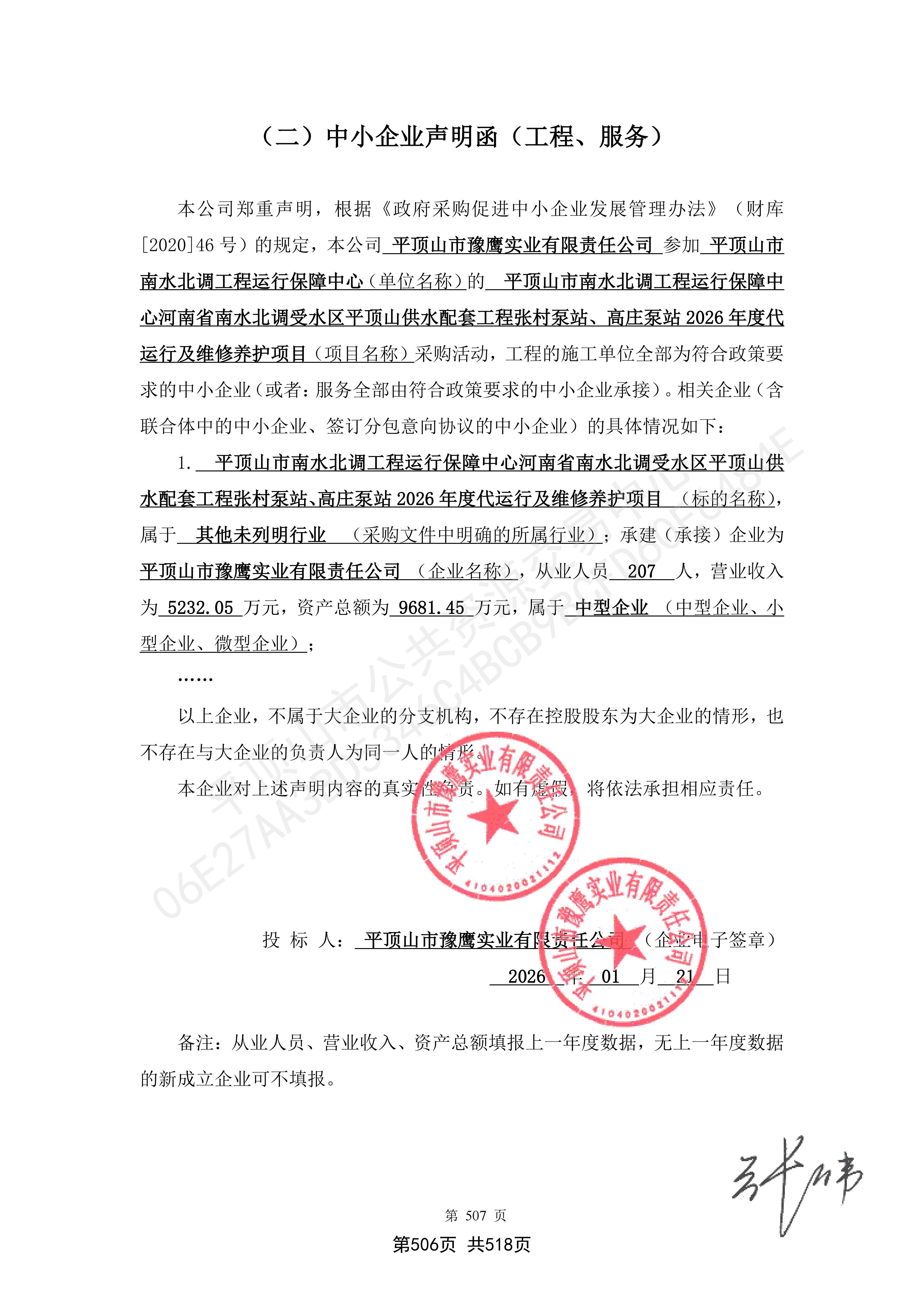 | *、采购项目名称:平顶山市南水北调工程运行保障中心河南省南水北调受水区平顶山供水配套工程张村泵站、高庄泵站****年度代运行及维修养护项目 | |||||||||||||||||||||||||||||||