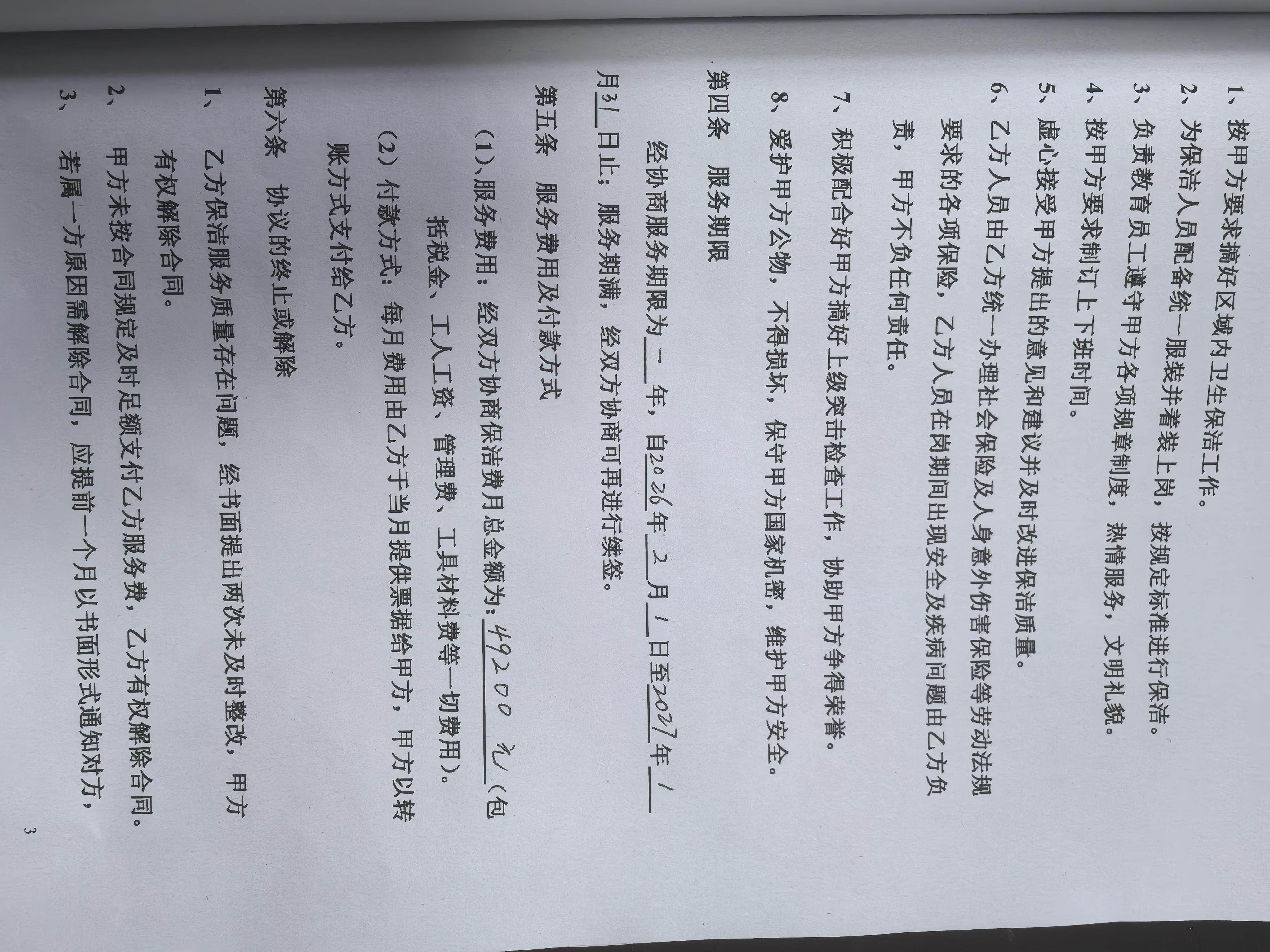 | 二、合同名称:保洁****年工资 | ||||||||||||