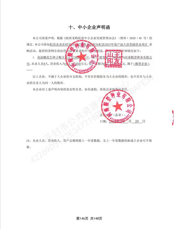 杞县农业农村局杞县2025年度产油大县奖励资金项目(一标段)结果公告