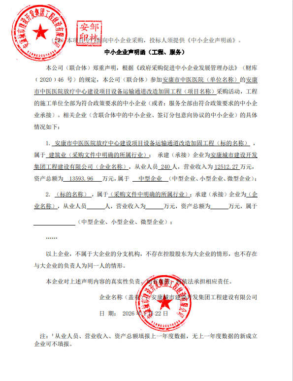 安康市中医医院放疗中心建设项目设备运输通道改造加固工程中标(成交)结果公告