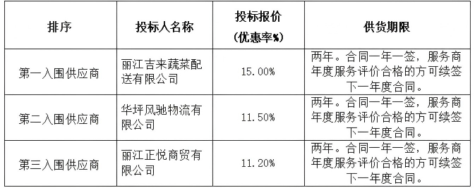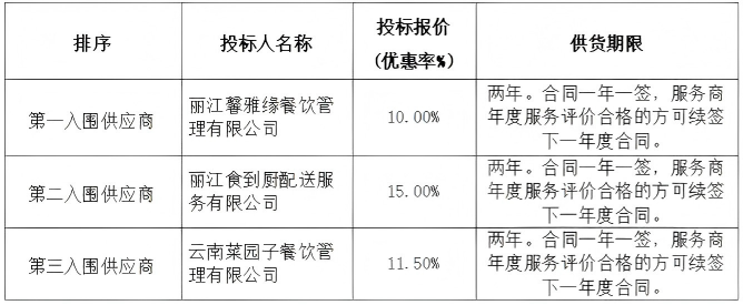 云南/丽江 中标结果