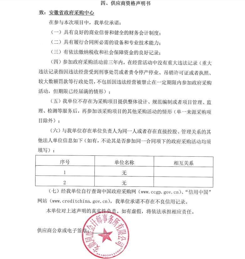 供应商资格声明书:声明书.***