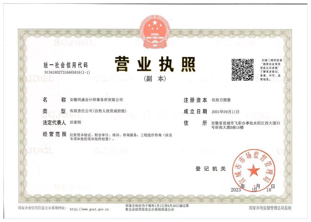 供应商名称:安徽同盛会计师事务所有限公司