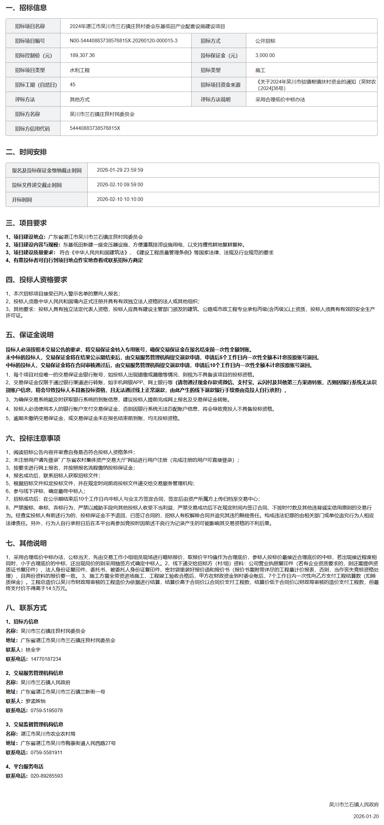 2024年湛江市吴川市兰石镇庄艮村委会东基低田产业配套设施建设项目招标公告