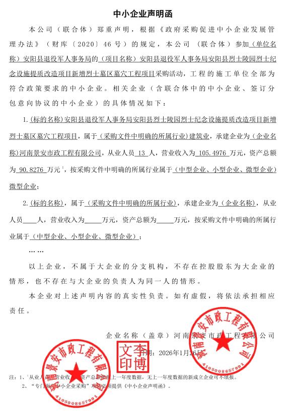 安阳县退役军人事务局安阳县烈士陵园烈士纪念设施提质改造项目新增烈士墓区墓穴工程项目-成交公告