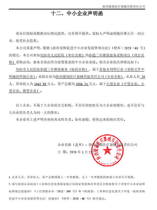 旬阳市人民医院彩超三年维保服务采购项目中标(成交)结果公告