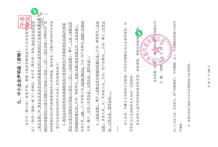 商水县农业农村局河南强筋优质小麦优势特色产业集群商水县2022年续建项目(小麦专用粉生产深加工)项目-中标公告