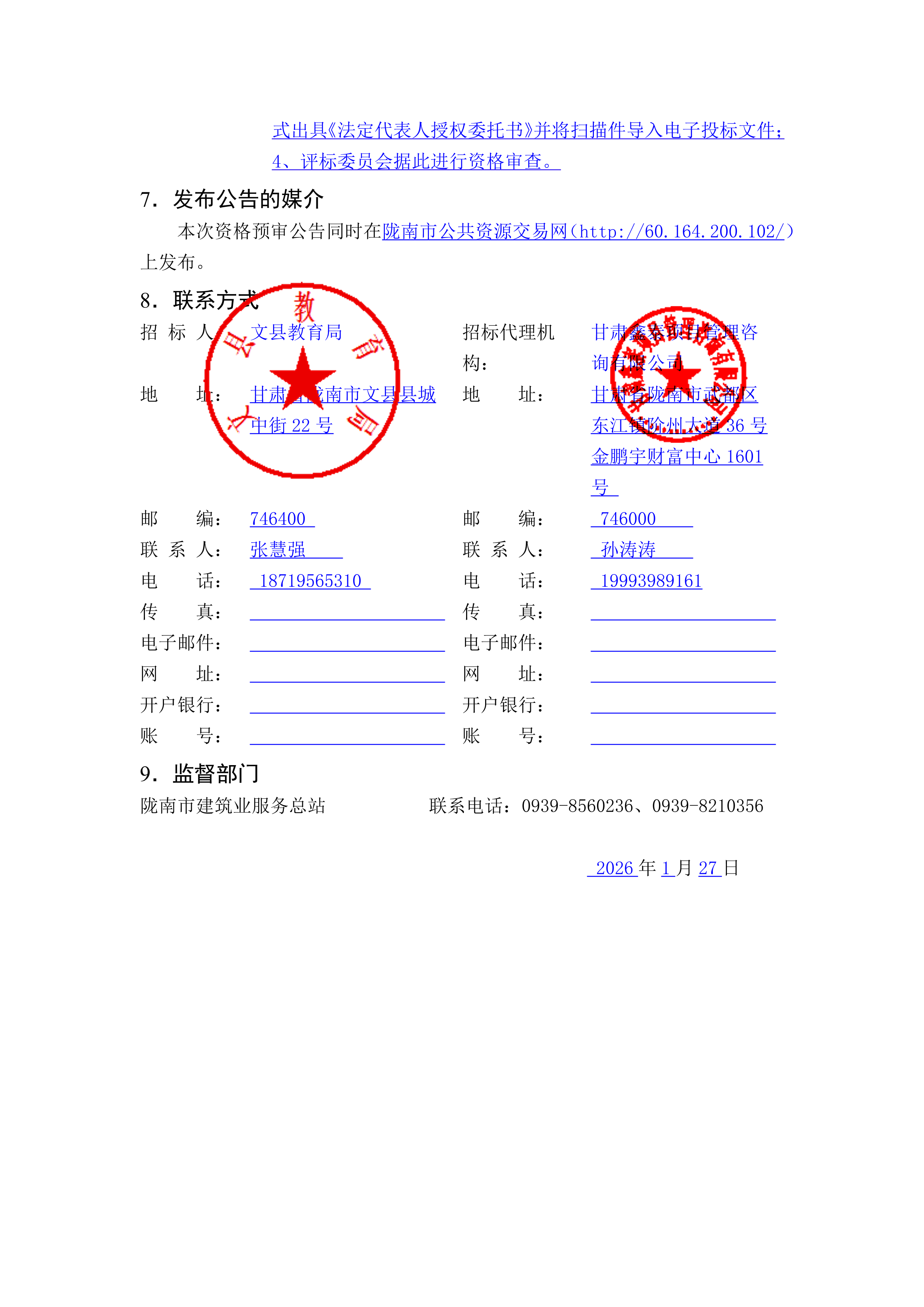 甘肃/陇南 招标采购