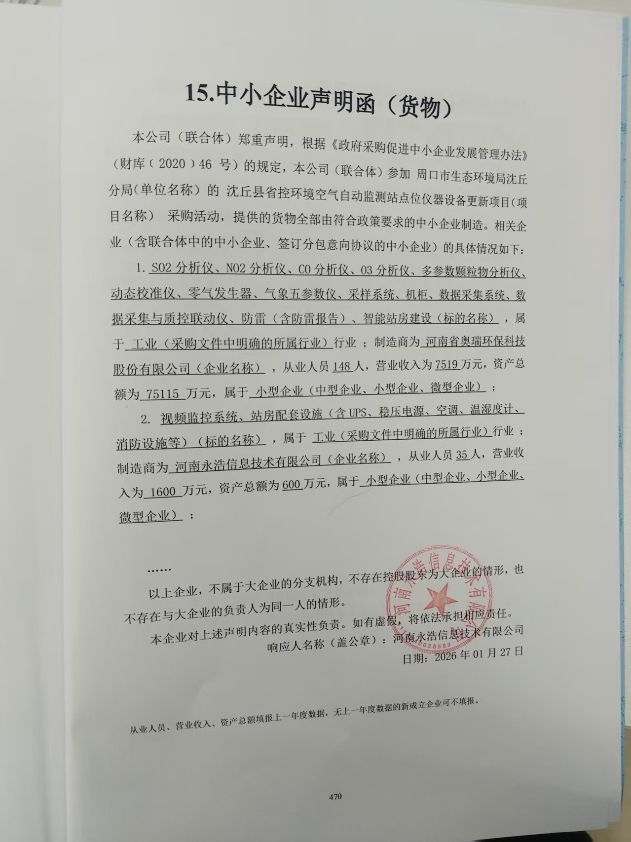 周口市生态环境局沈丘分局沈丘县省控环境空气自动监测站点位仪器设备更新项目-中标公告