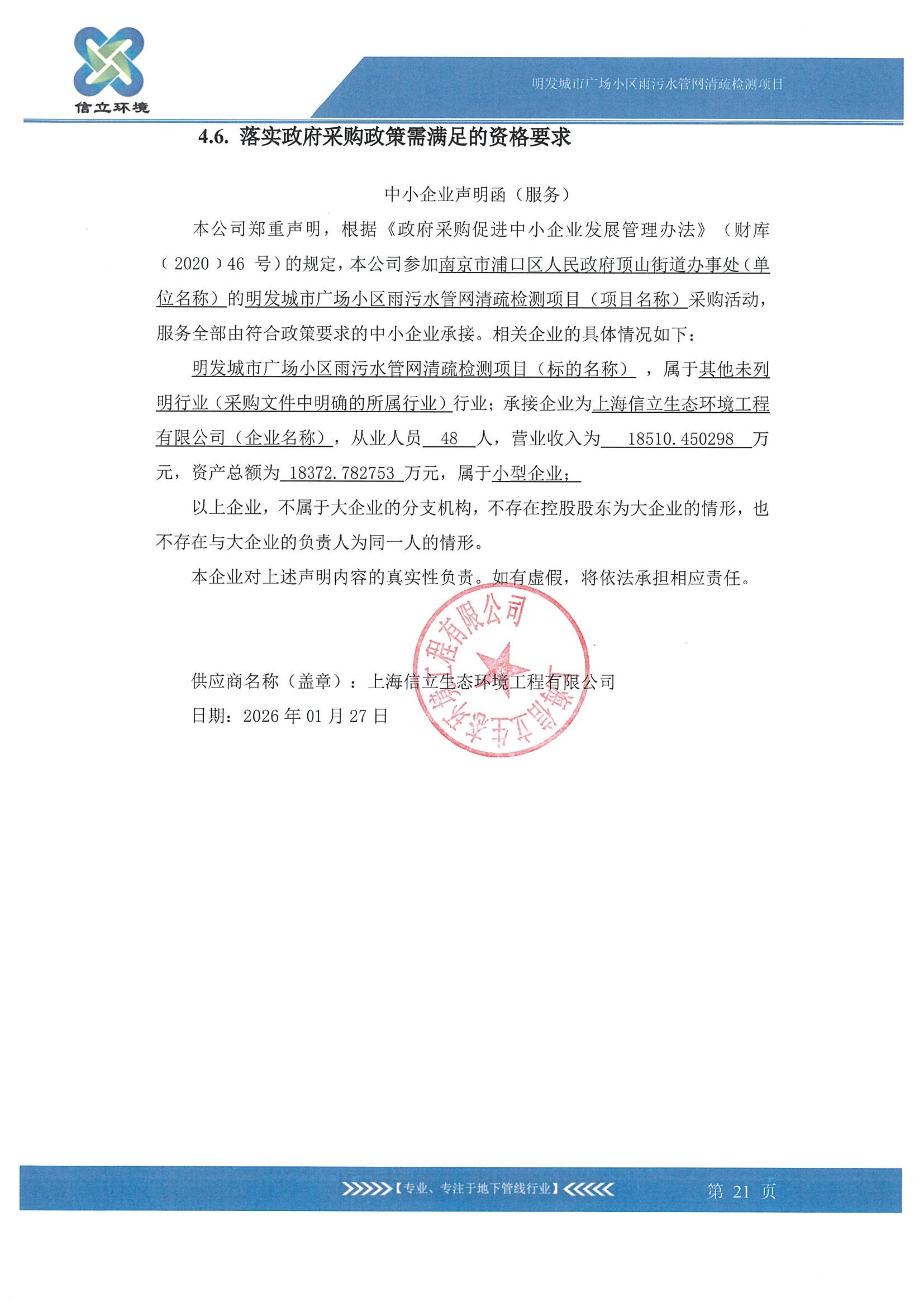 | 供应商名称:上海信立生态环境工程有限公司 |