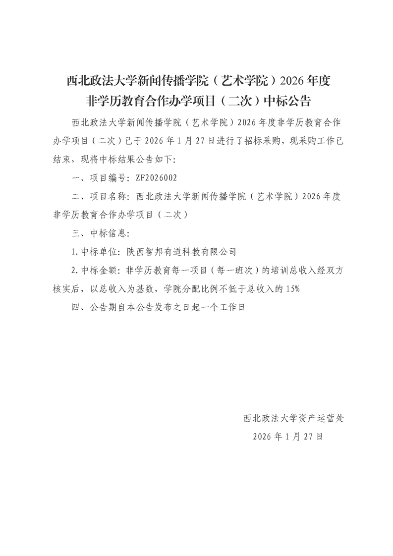 非学历教育合作办学项目(二次)中标公告