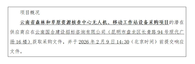 *.项目名称:云南省森林和草原资源核查中心无人机、移动工作站设备采购项目