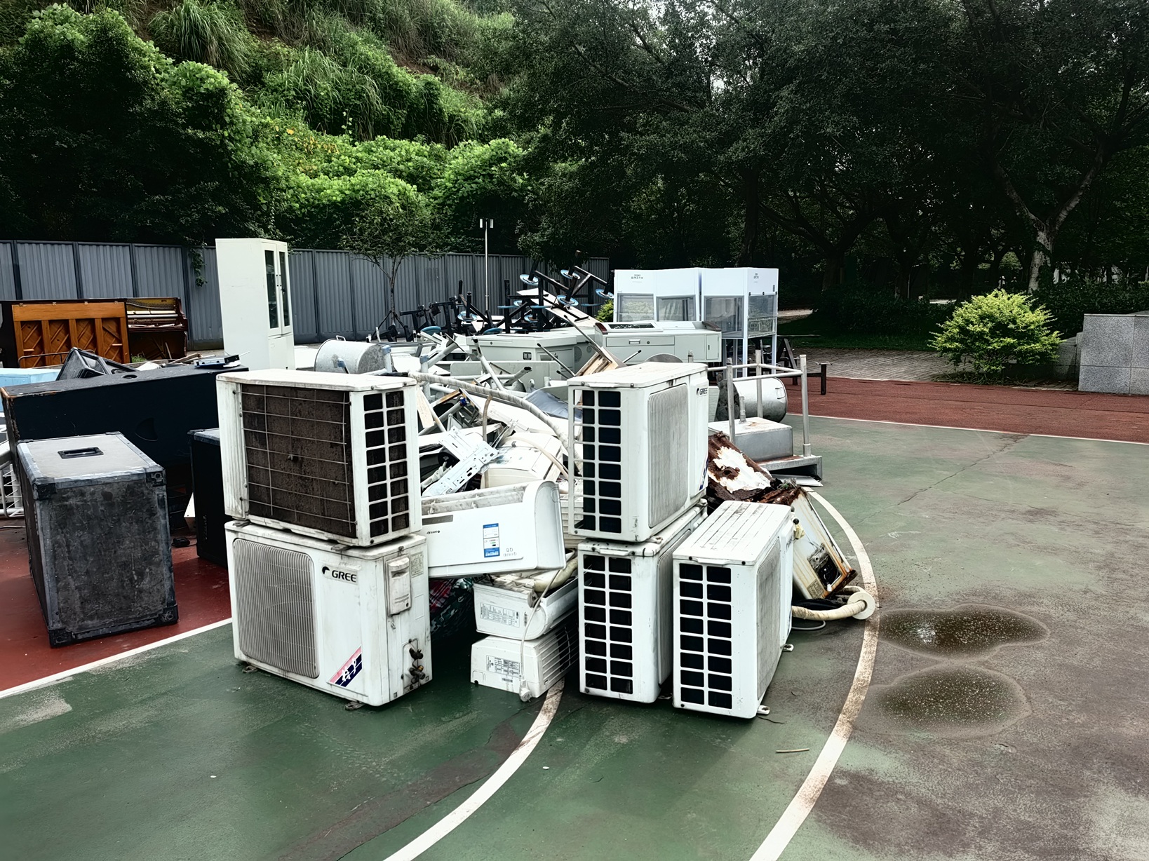| 资产详情描述 报废*批固定资产(班班通设备(**个主机)、华硕台式机(***台) 、空调(*台室外机、室内机*个)、海康计算机监控设备(新旧各*套)、铁质桌凳(****套)、文件柜,机柜(**个)、篮球架(*付)、单双杠(*付)、乒乓球桌(*张)、食堂用具(*批)、冰柜(大*个,小*个)、餐桌(**张)、锅炉一台,水箱*个,钢质讲桌、书架(*张)、上下铺铁床(**张)废旧废铁一批等,原值***多万元,因为报废物品,不能保证其完整性,具体情况以实际现场查看的货品为准进行报价。 |