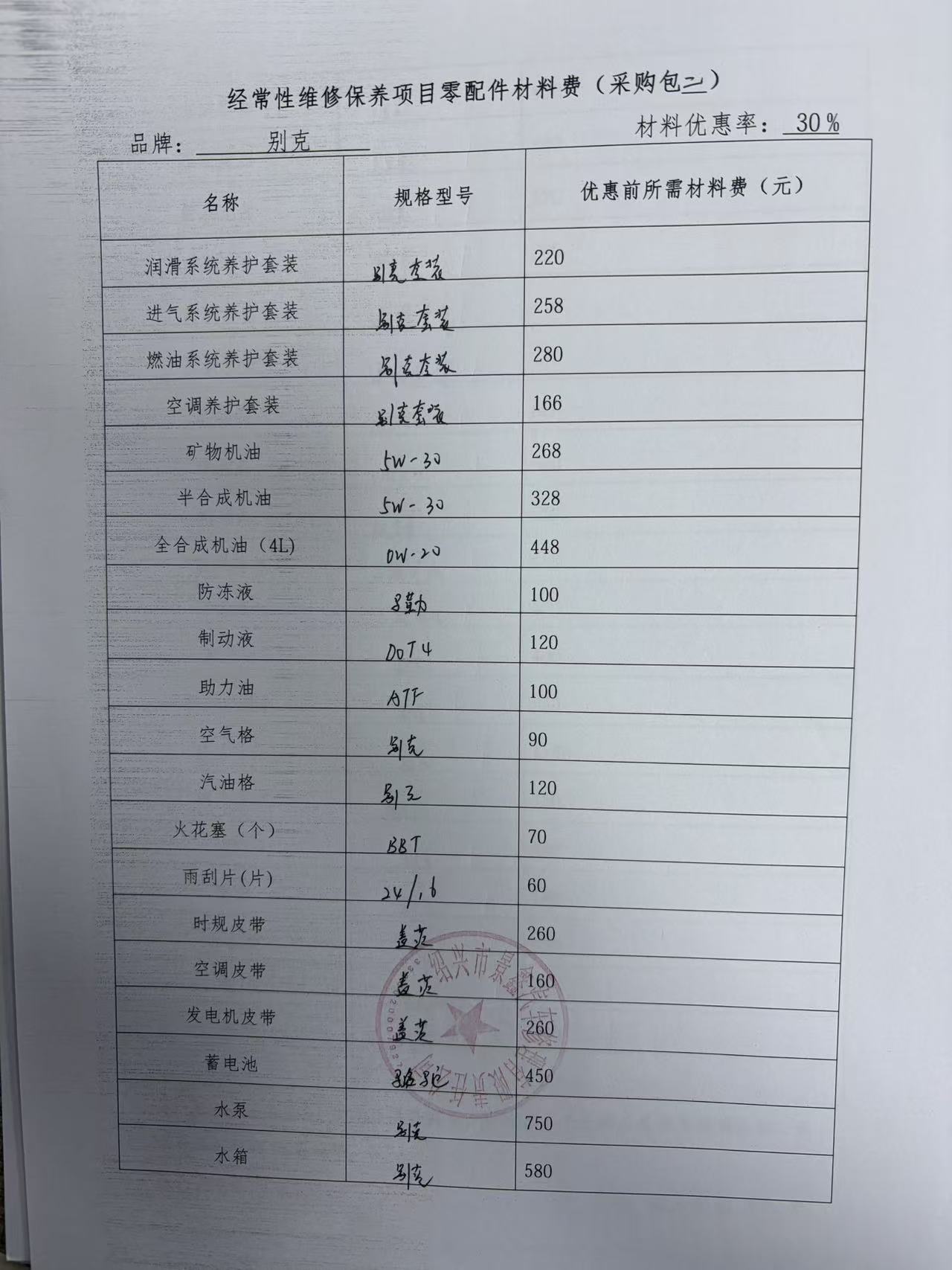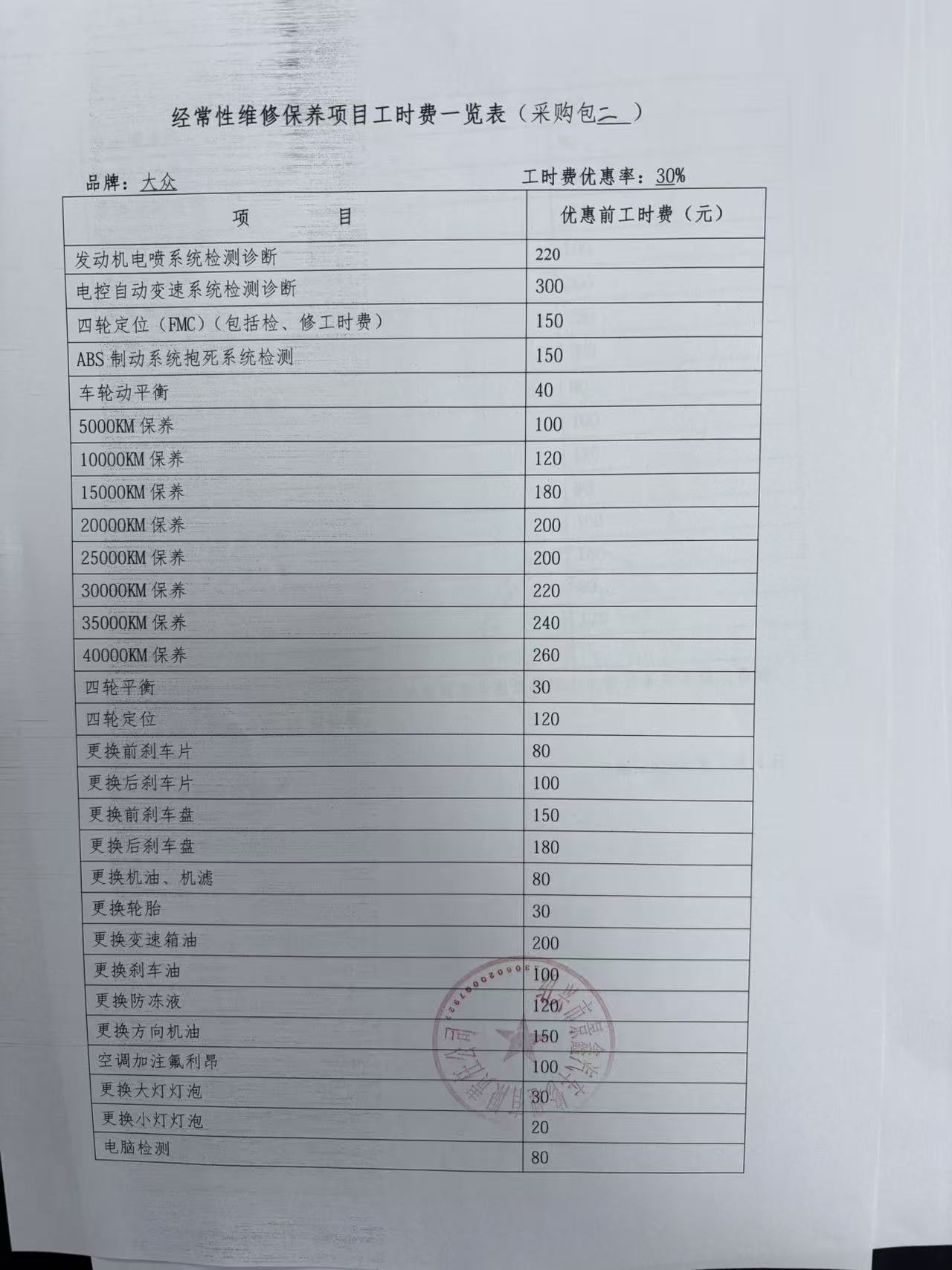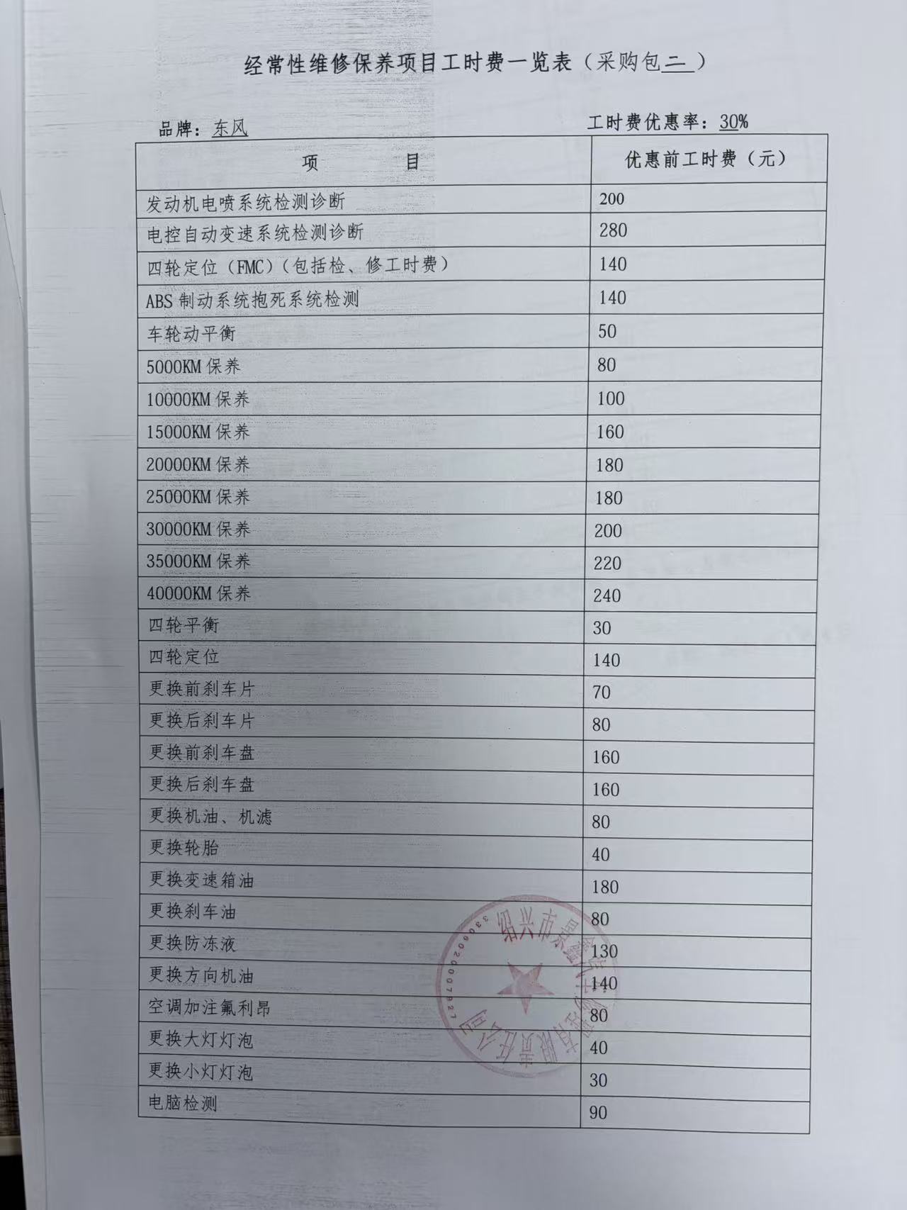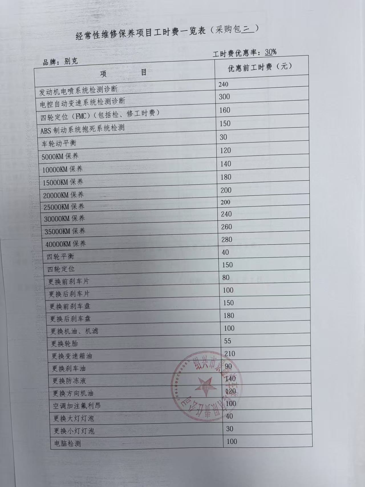 经常性维修保养项目工时费览表:********************************.***