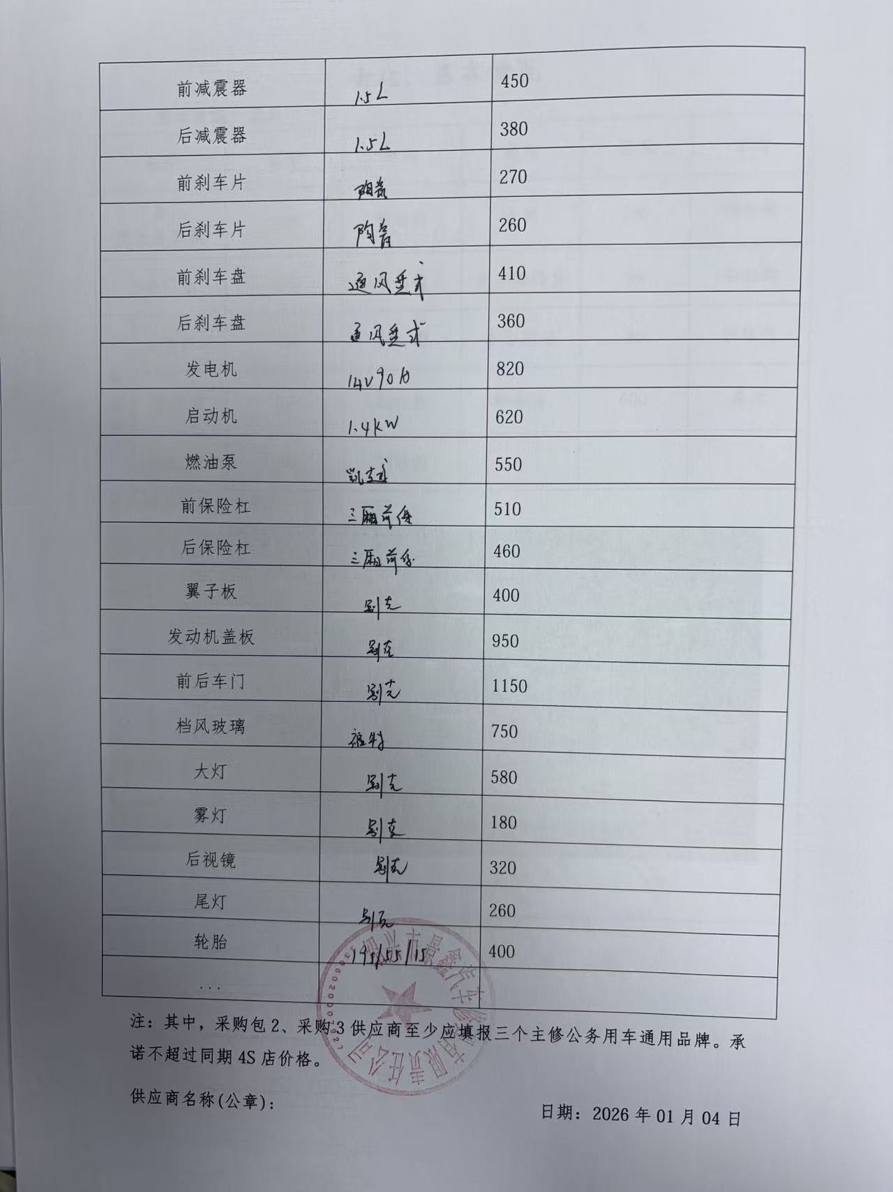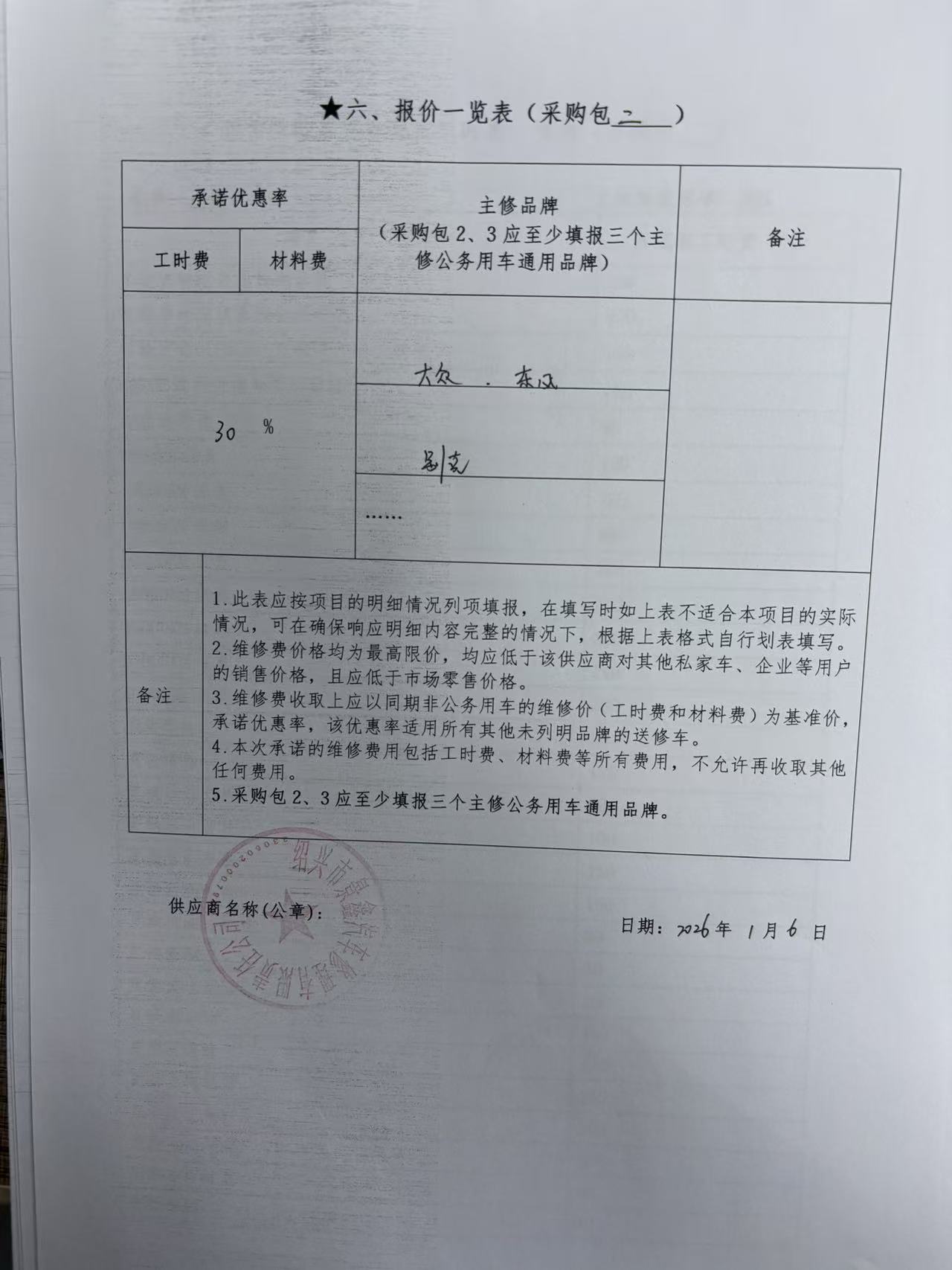 、二类维修供应商(综合修理类)