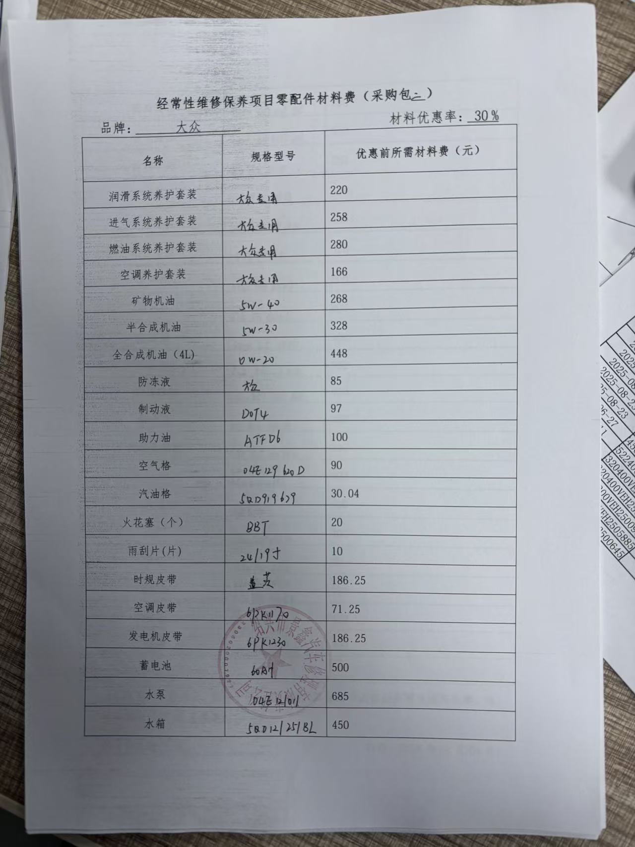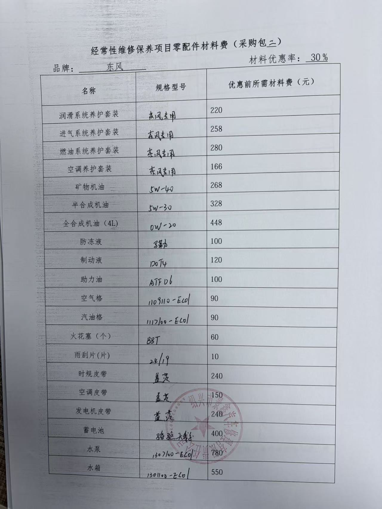 经常性维修保养项目零配件材料费:********************************.***