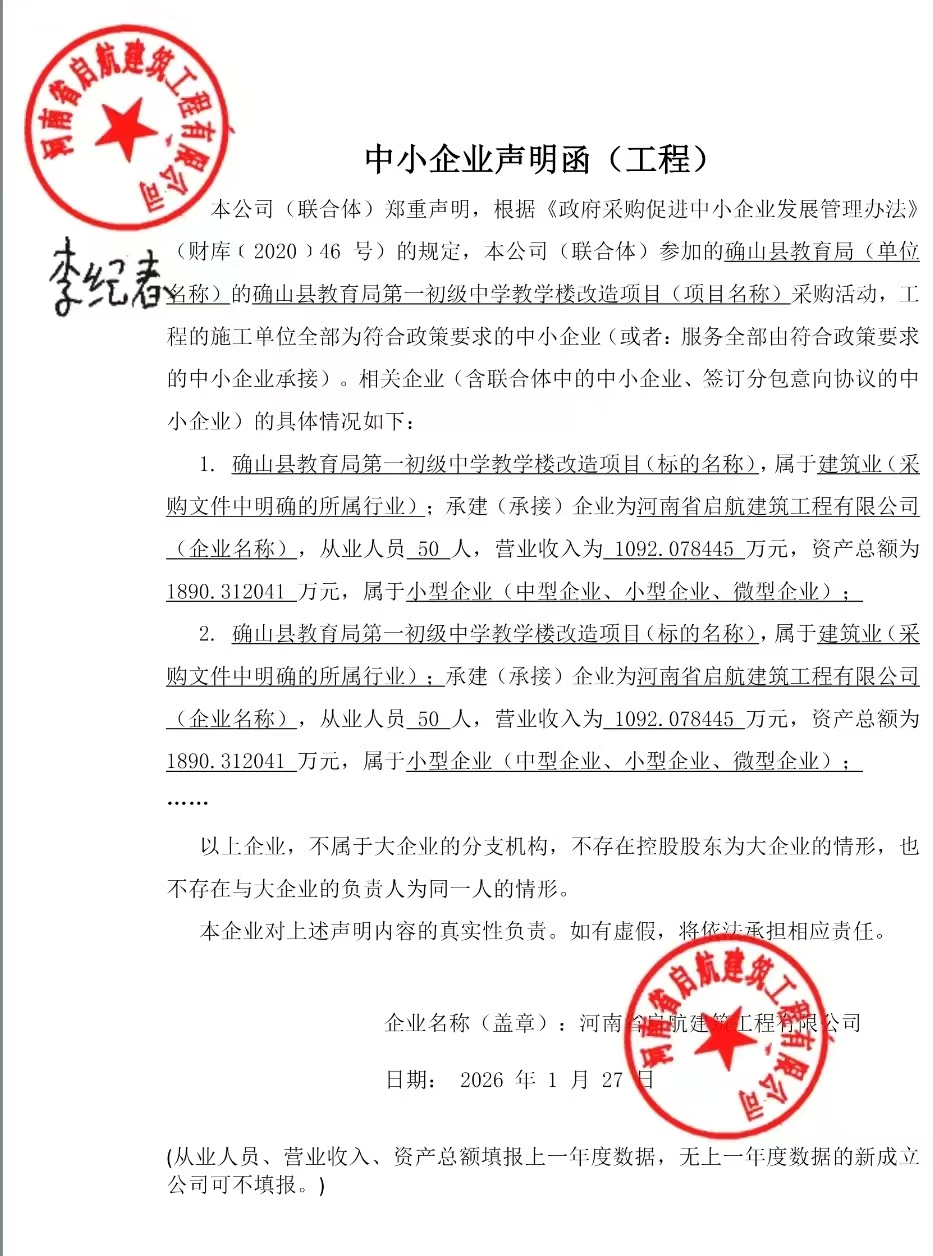 | *、采购项目名称:确山县教育局第一初级中学教学楼改造项目 | |||||||||||||||||||||||||||||||