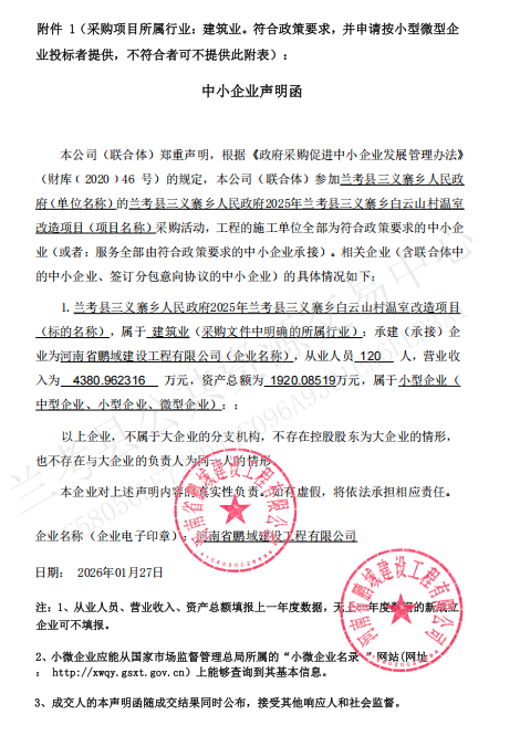 兰考县三义寨乡人民政府2025年兰考县三义寨乡白云山村温室改造项目-成交公告