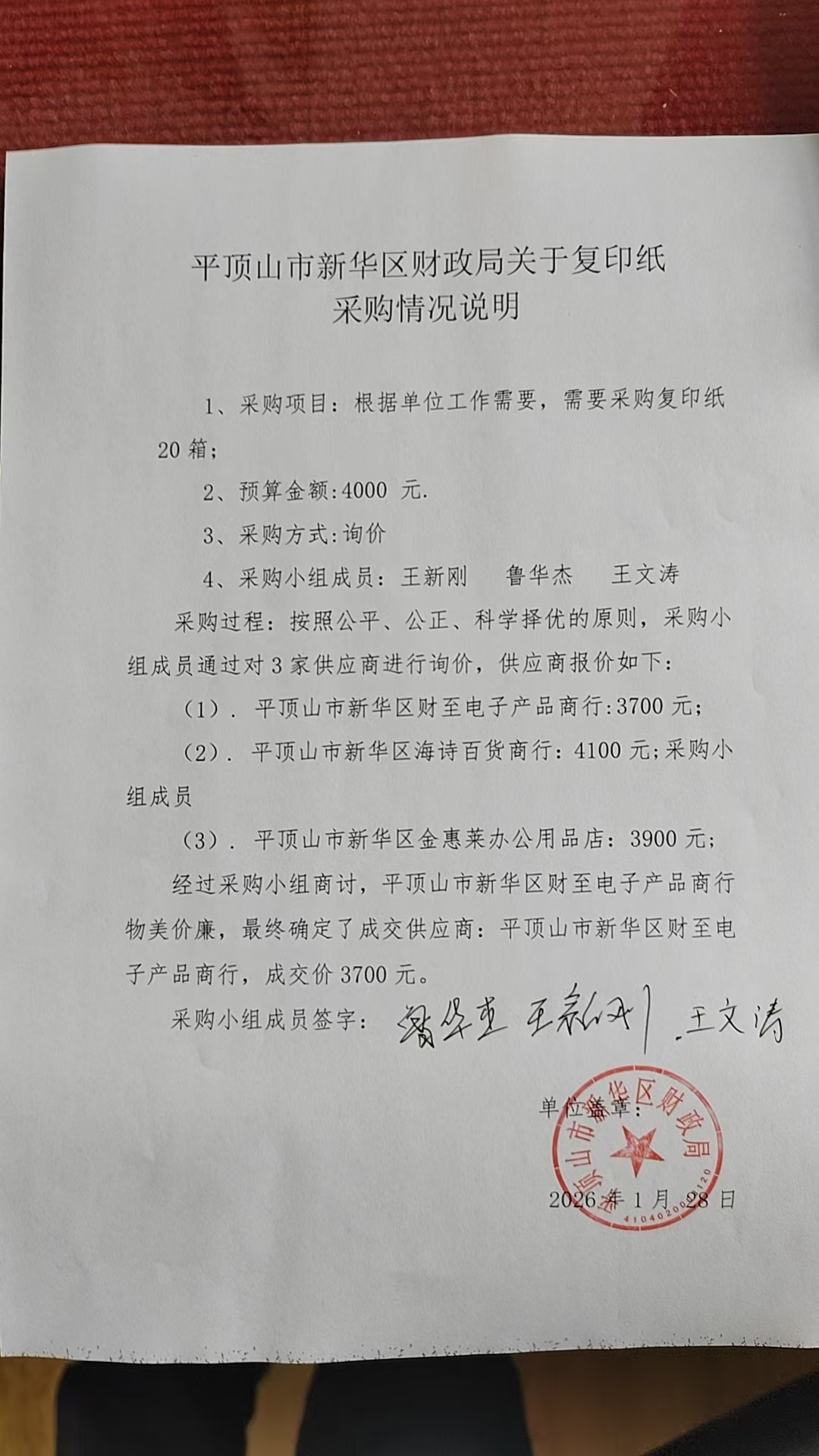 | 四、项目名称:**复印纸纸采购 | ||||||||||||