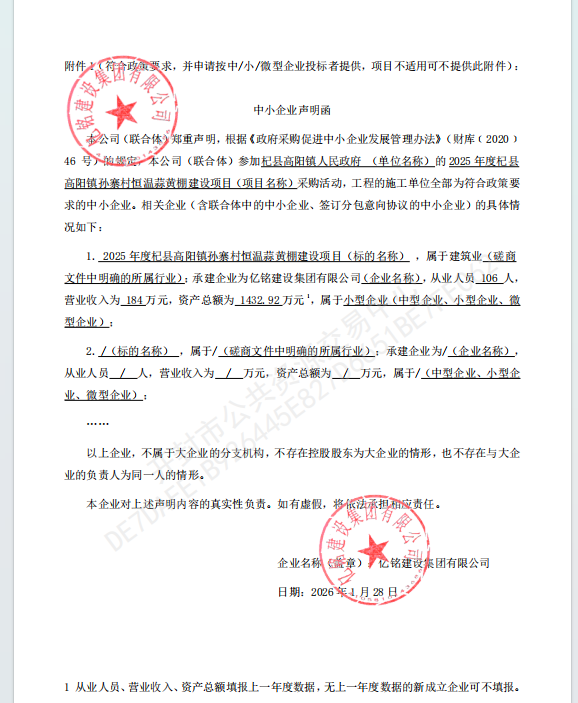 2025年度杞县高阳镇孙寨村恒温蒜黄棚建设项目-成交公告