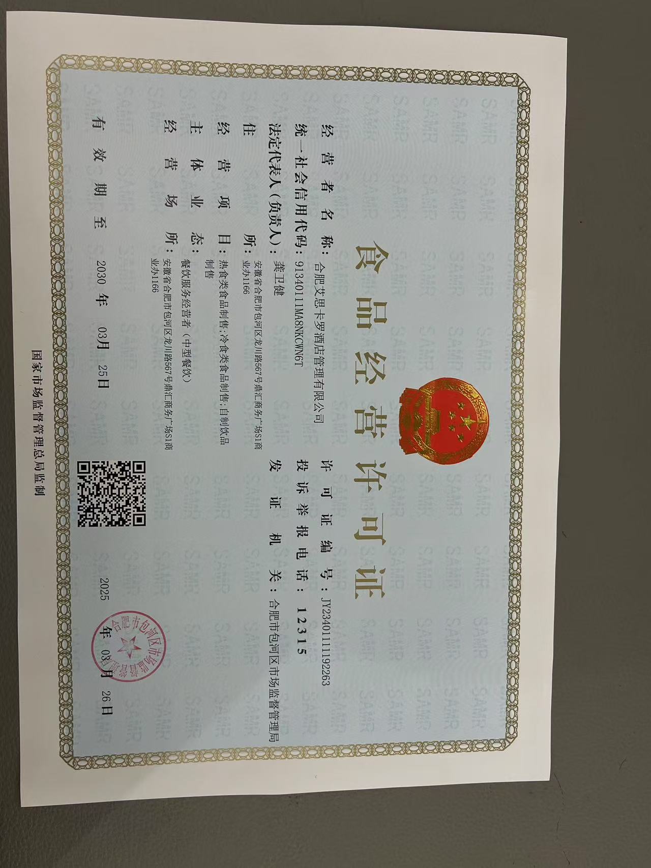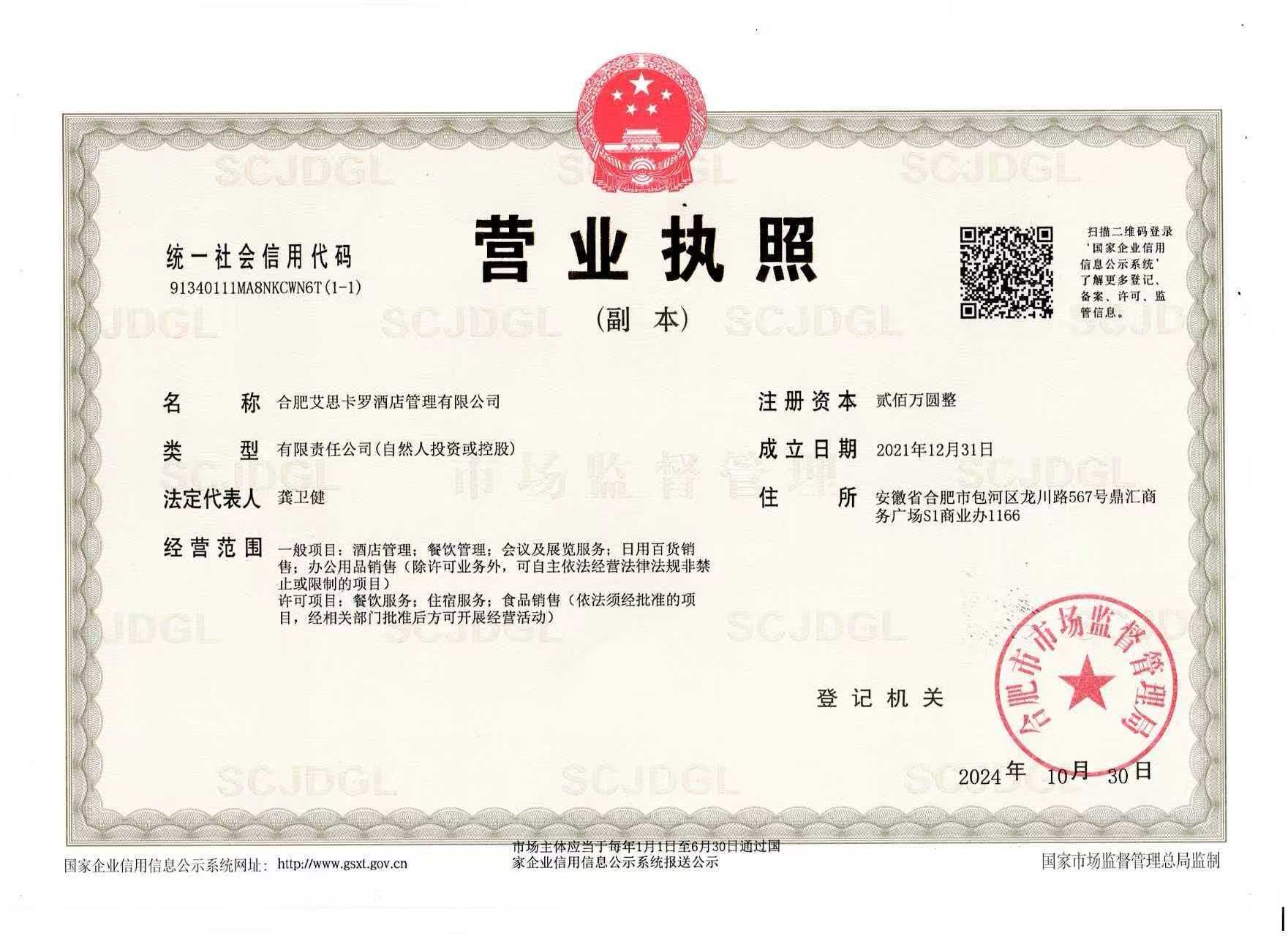 供应商名称:合肥艾思卡罗酒店管理有限公司
