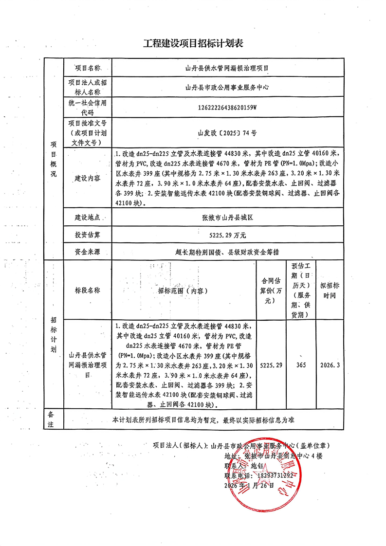 | 招标项目名称 | 山丹县供水管网漏损治理项目 | ||