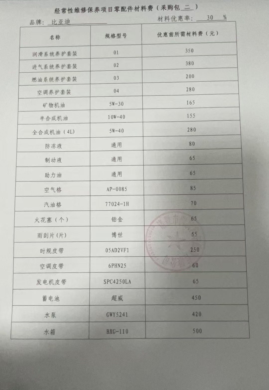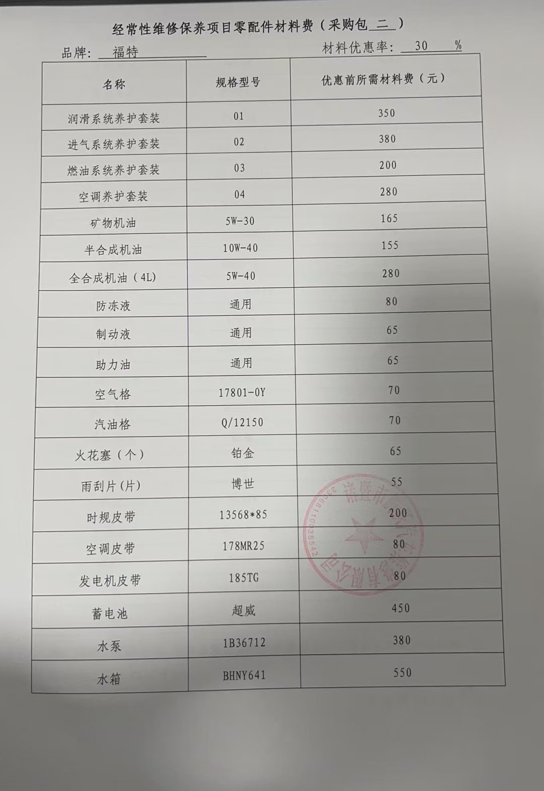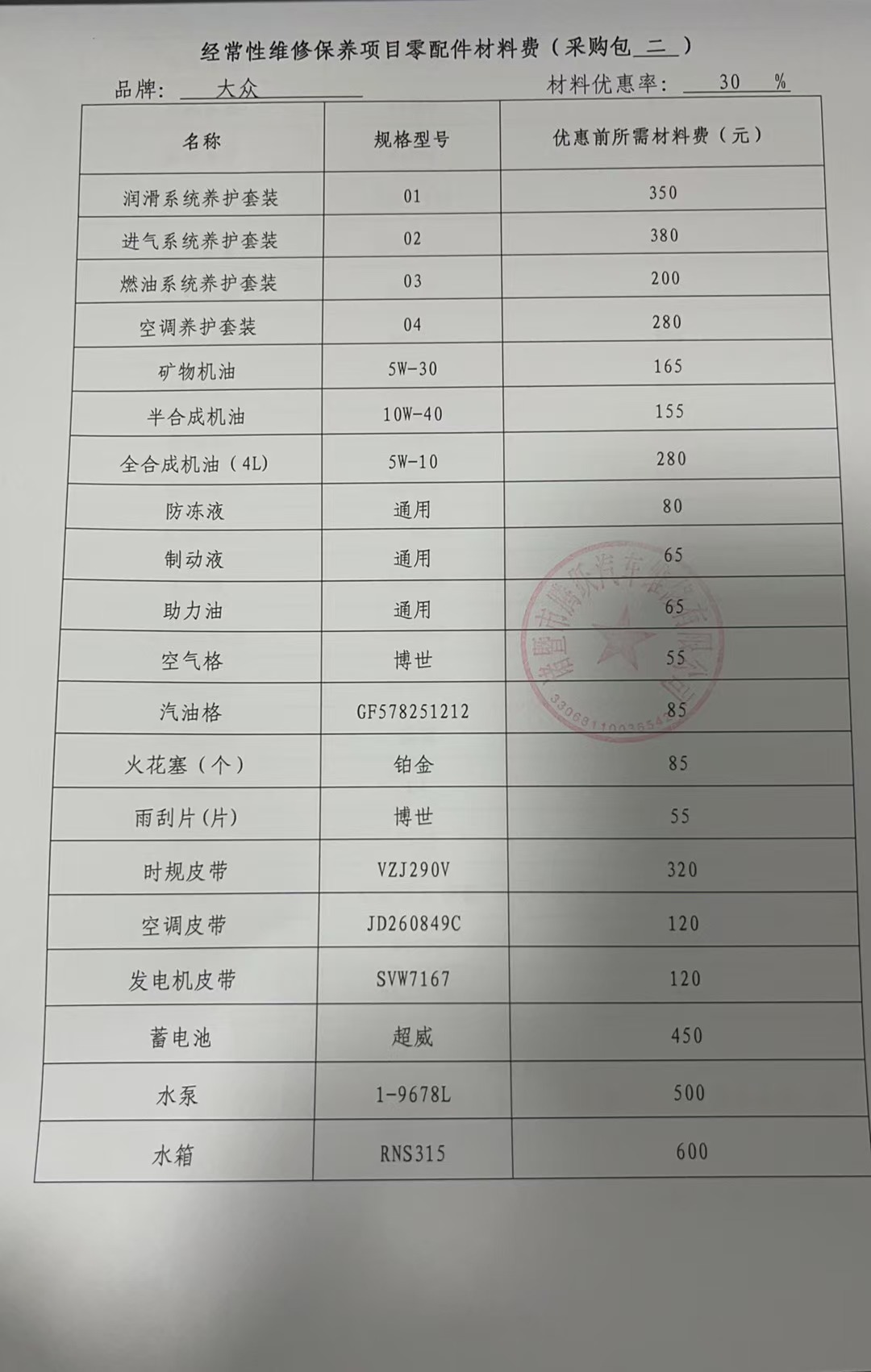 经常性维修保养项目零配件材料费:********************************.***