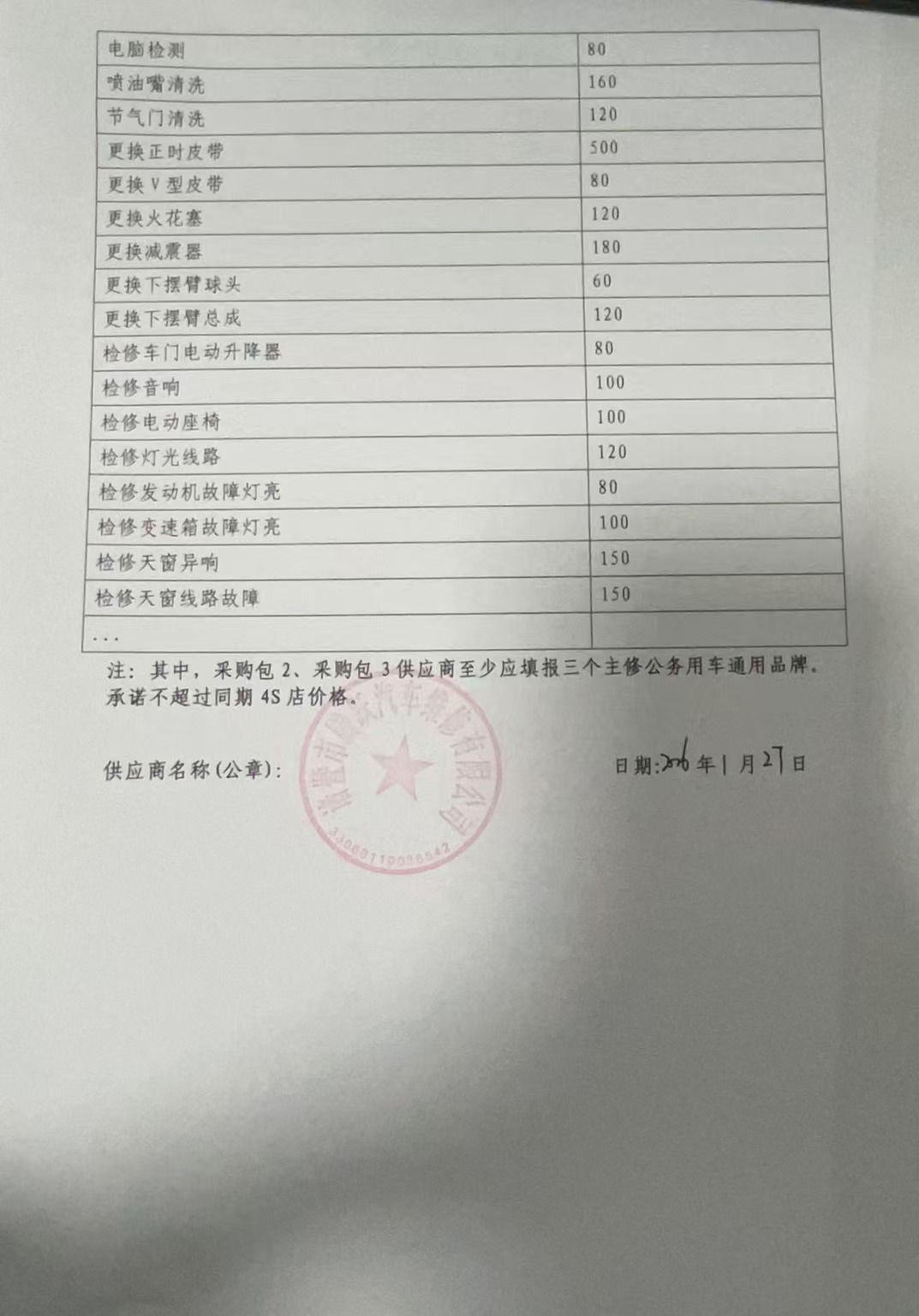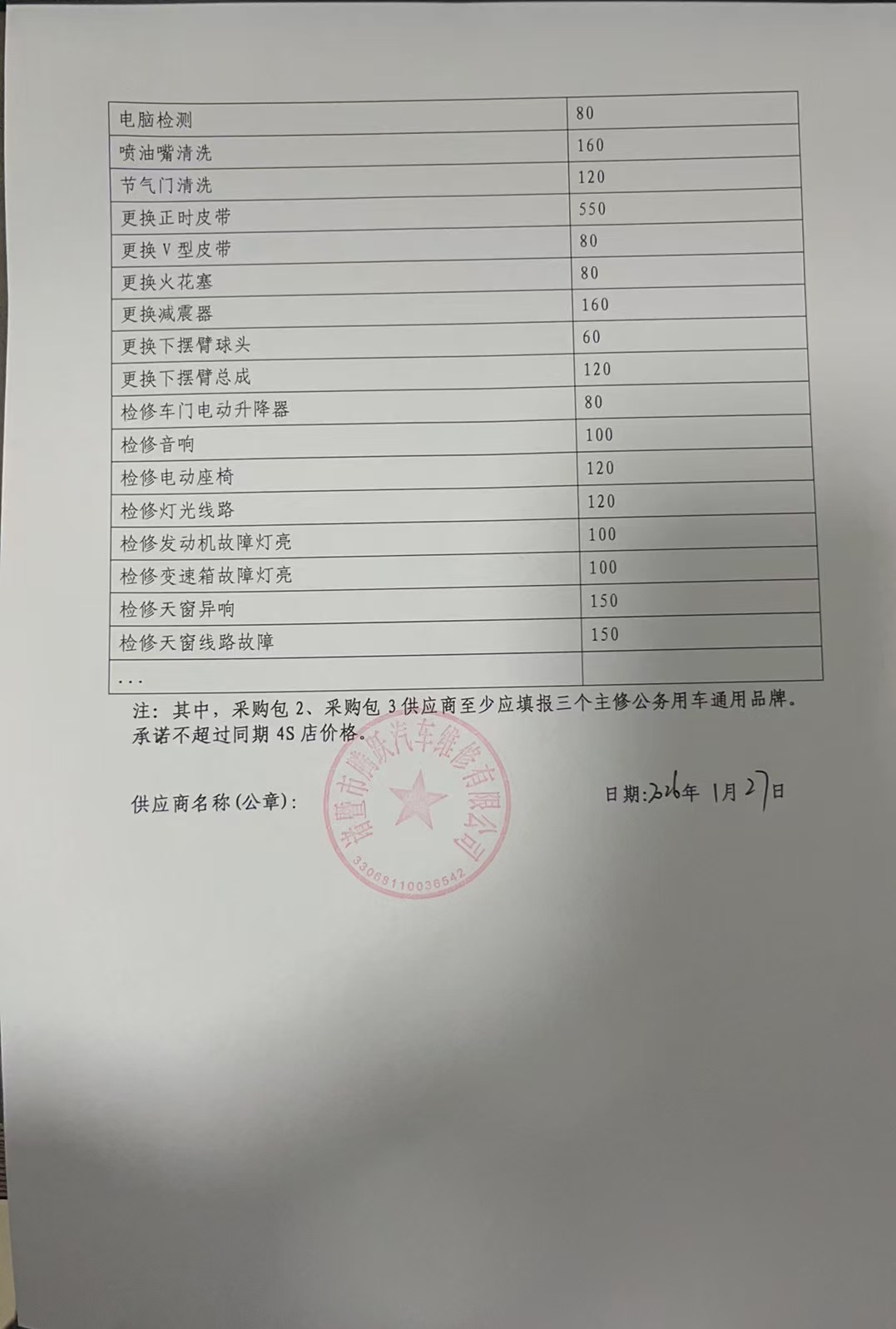 、二类维修供应商(综合修理类)