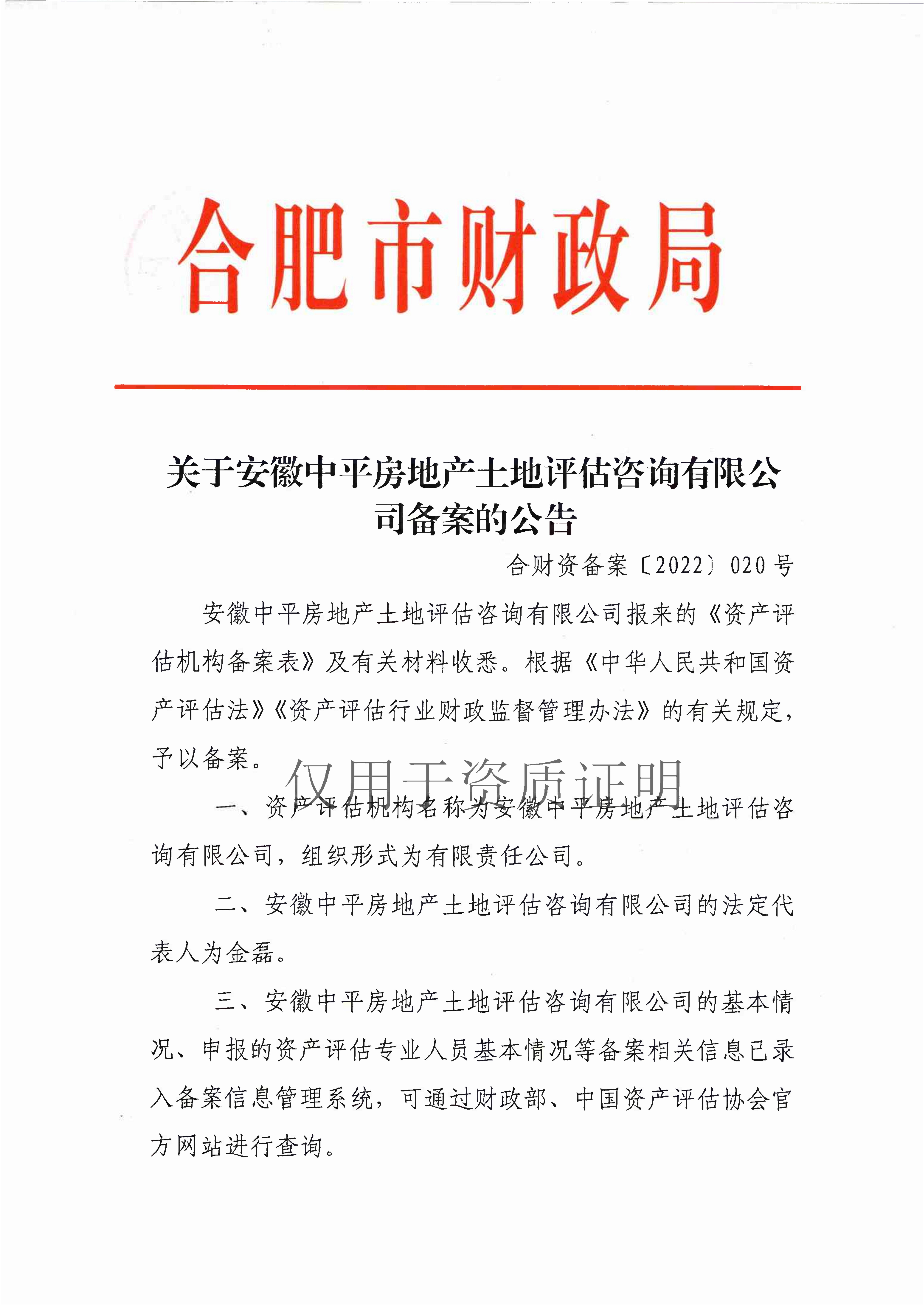 安徽中平房地产土地评估咨询有限公司入围2026-2027年度安徽省省直单位资产评估开放式框架协议的结果公告