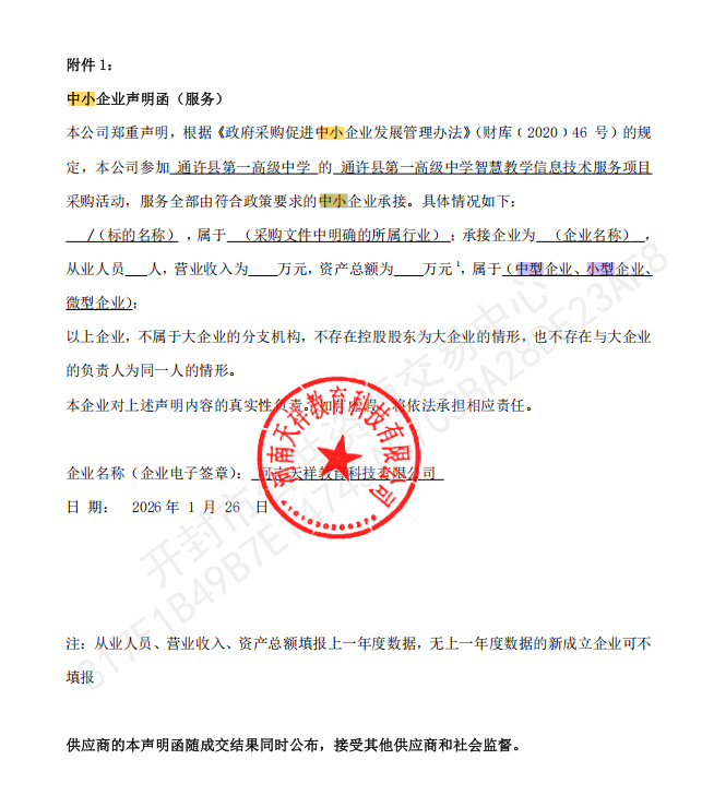 | *、采购项目名称:通许县第一高级中学智慧教学信息技术服务项目 | |||||||||||||||||||||||||||||||