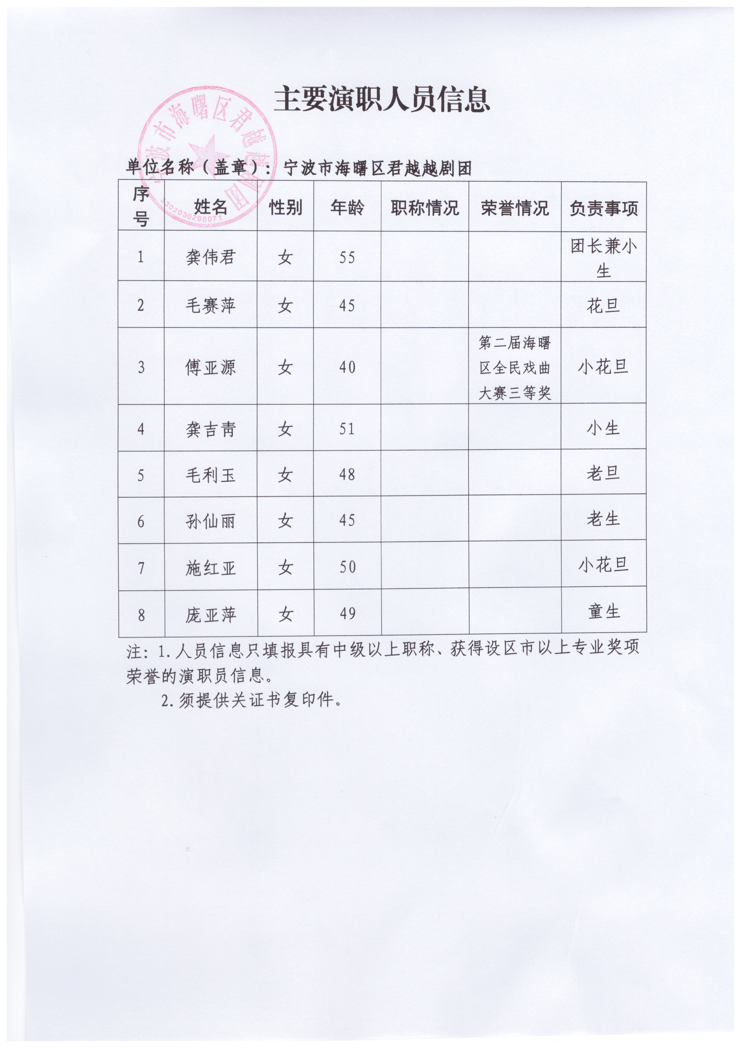 演职人员信息(按《公告》附件*格式填写):演职人员.***