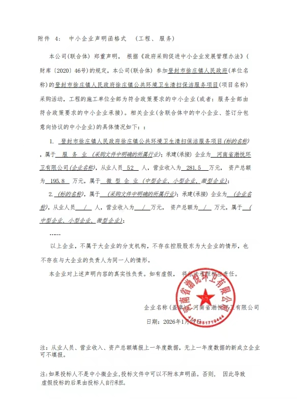 登封市徐庄镇人民政府徐庄镇公共环境卫生清扫保洁服务项目中标结果更正公告