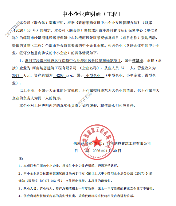 漯河市沙澧河建设运行保障中心沙澧河风景区景观修复项目*成交公告
