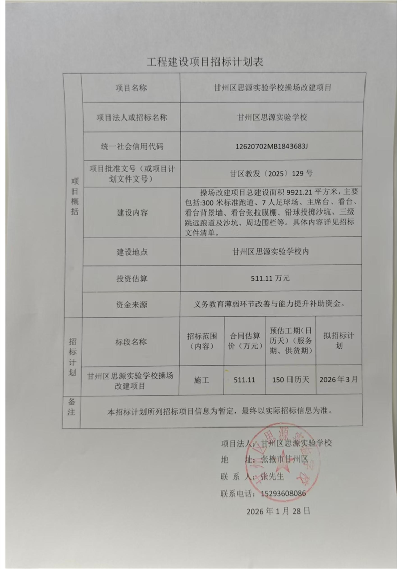 | 招标项目名称 | 甘州区思源实验学校操场改建项目 | ||