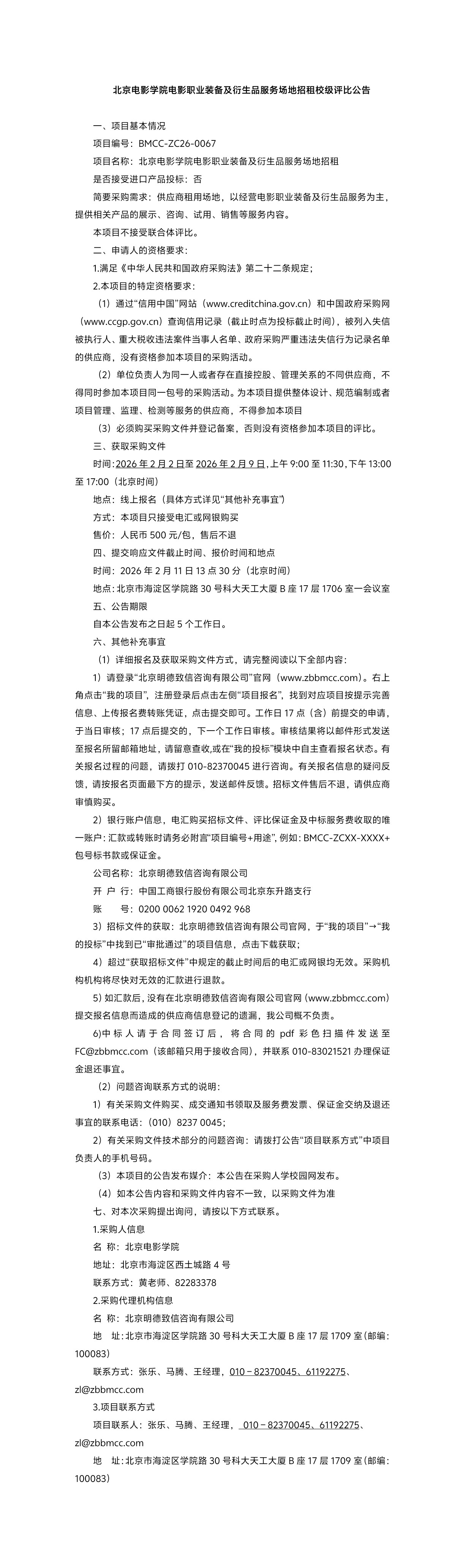 北京电影学院电影职业装备及衍生品服务场地招租校级评比公告