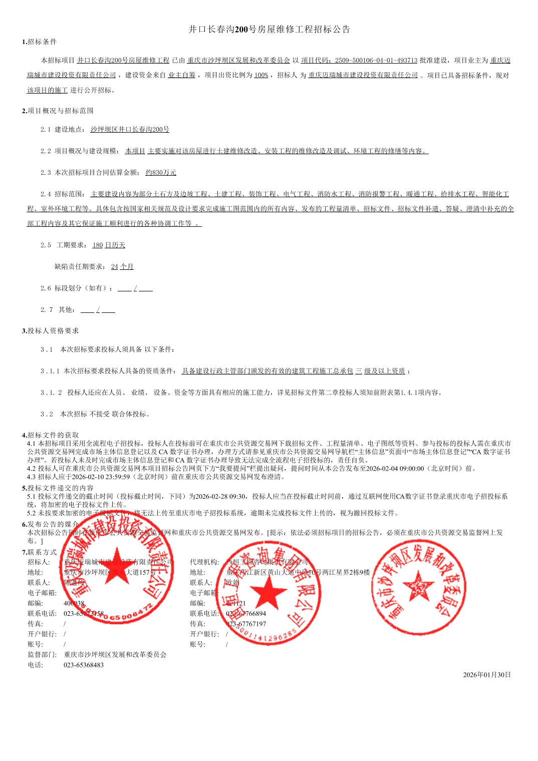 井口长春沟200号房屋维修工程招标公告