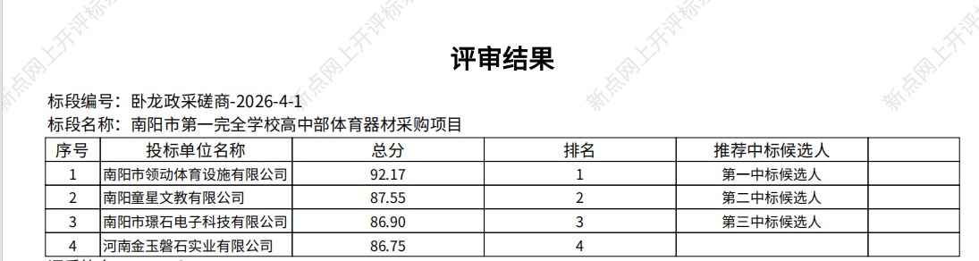 南阳市第一完全学校高中部体育器材采购项目-成交公告