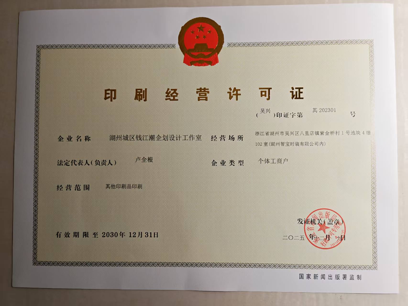 湖州城区钱江潮企划设计工作室印刷服务(《印刷业管理条例》其他印刷品
