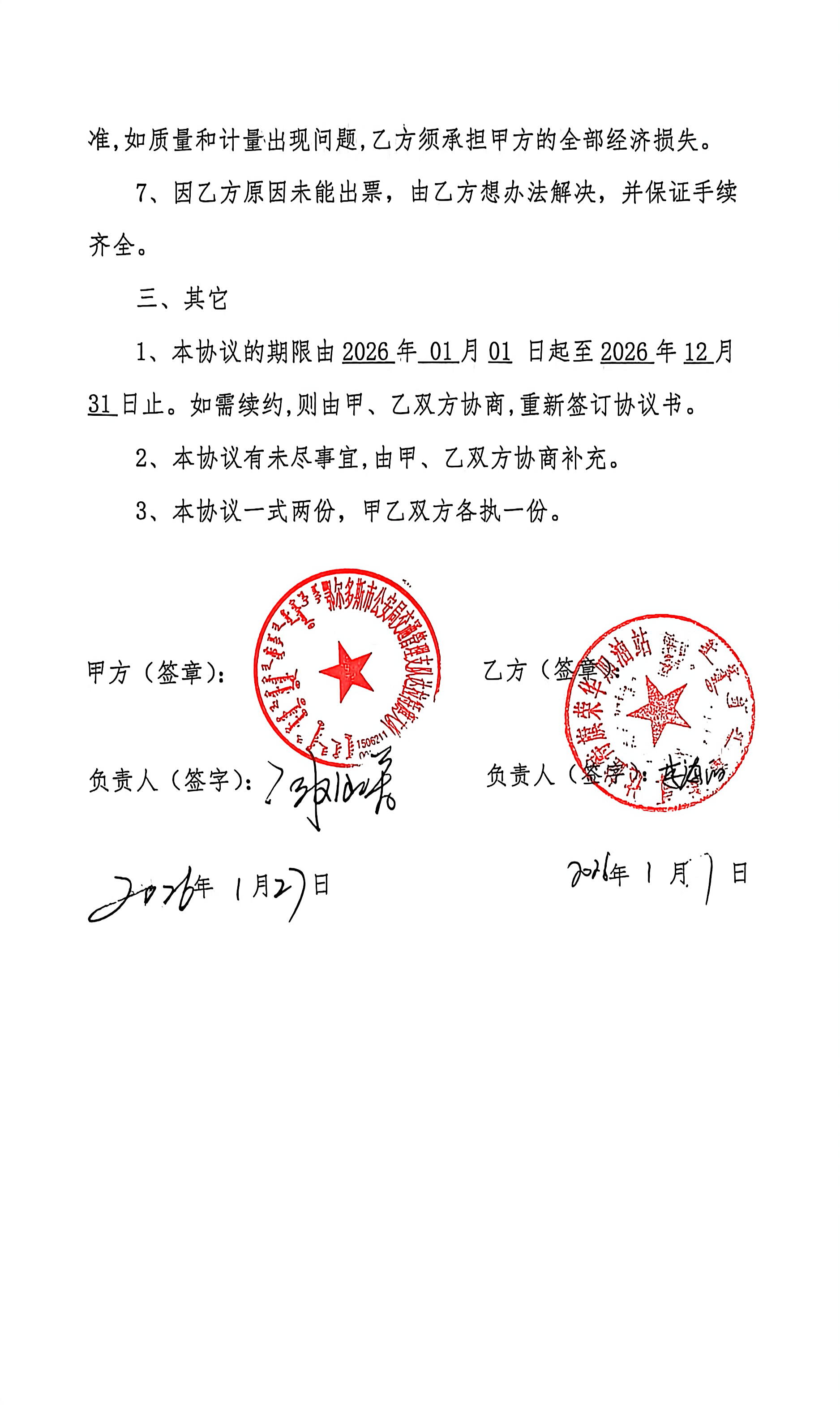 合同金额: **,***.**元,大写(人民币):壹万零贰佰玖拾叁元整 履约期限:****年**月**日至****年**月**日 履约地点:达旗树林召镇 采购方式: 七、合同签订日期****年**月**日 八、合同公告日期****年**月**日 九、其他补充事宜