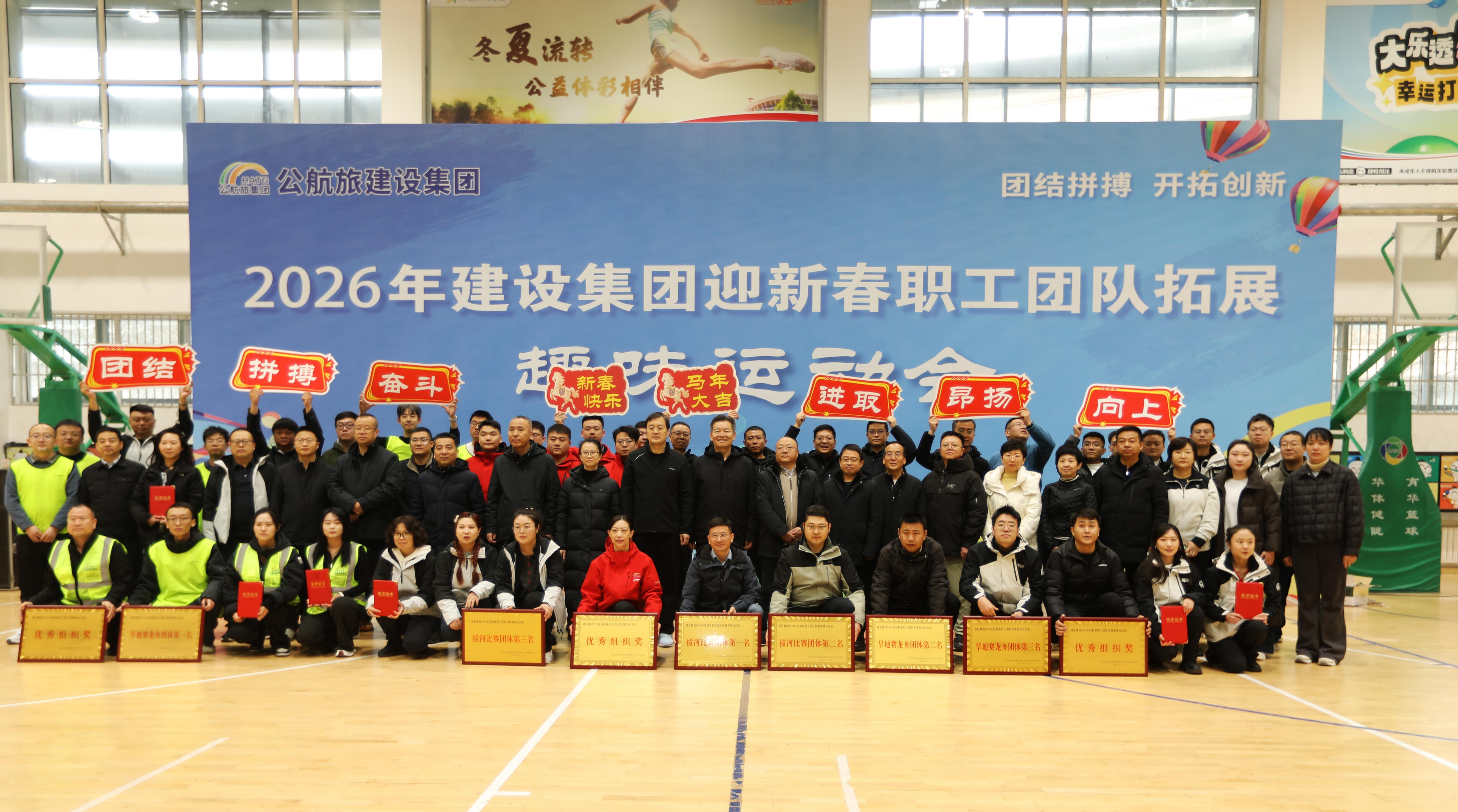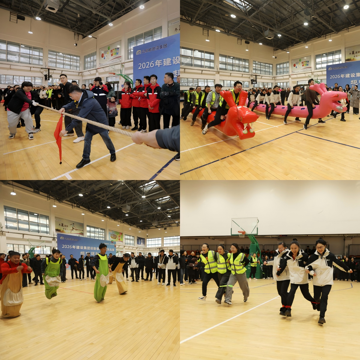 *月**日,为进一步丰富广大职工文体生活,激发工作热情,展现职工风采,提高公司职工凝聚力与向心力,建设集团举办迎新春职工团队拓展趣味运动会,公司领导班子成员,机关及各子公司职工***余人参加。