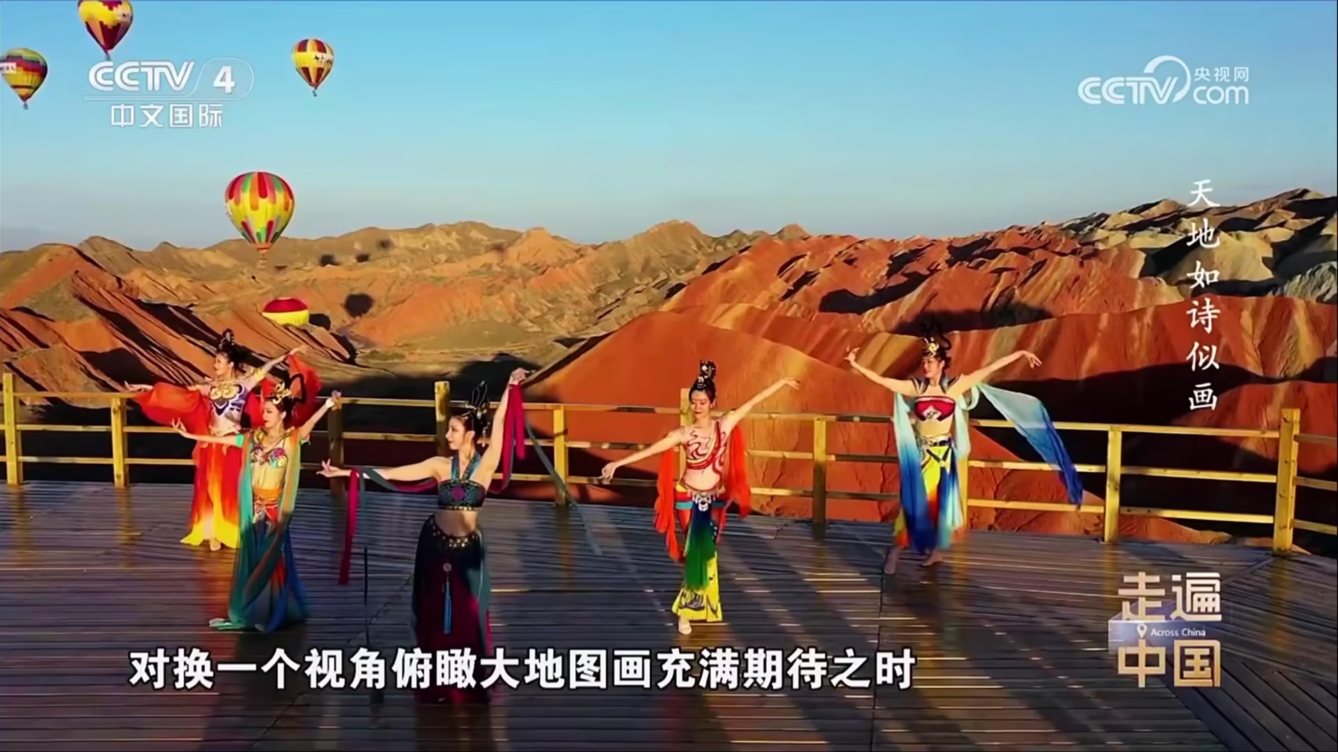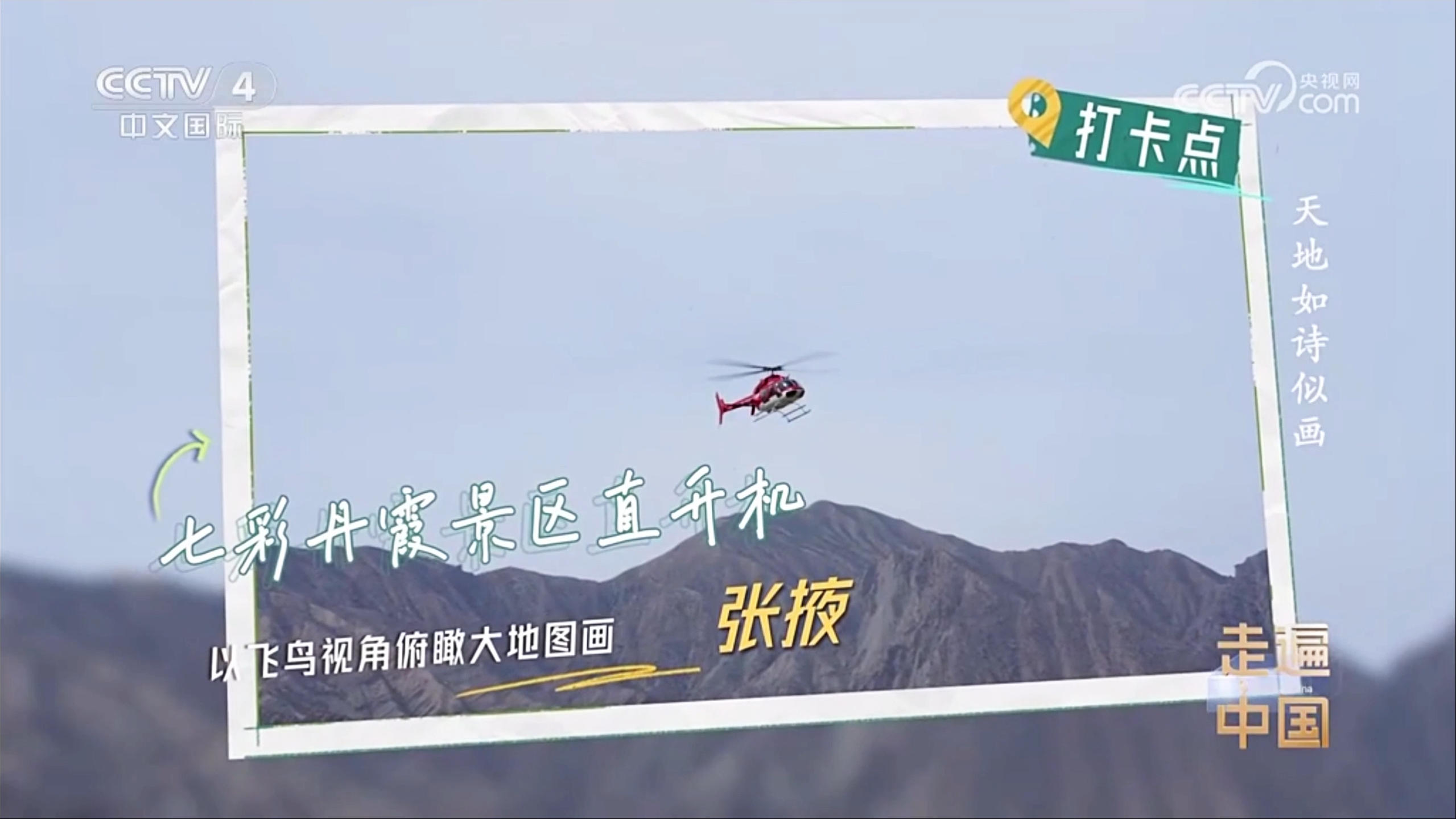 *月**日,中央广播电视总台******《走遍中国》栏目播出《最美旅途****:天地如诗似画》交旅融合纪录片。省公航旅集团张掖七彩丹霞景区以“低空+旅游”业态亮相,为全球观众呈现了一场跨越天地维度的文旅视觉盛宴,写下了浓墨重彩的一笔,奏响了文旅融合的时代强音。