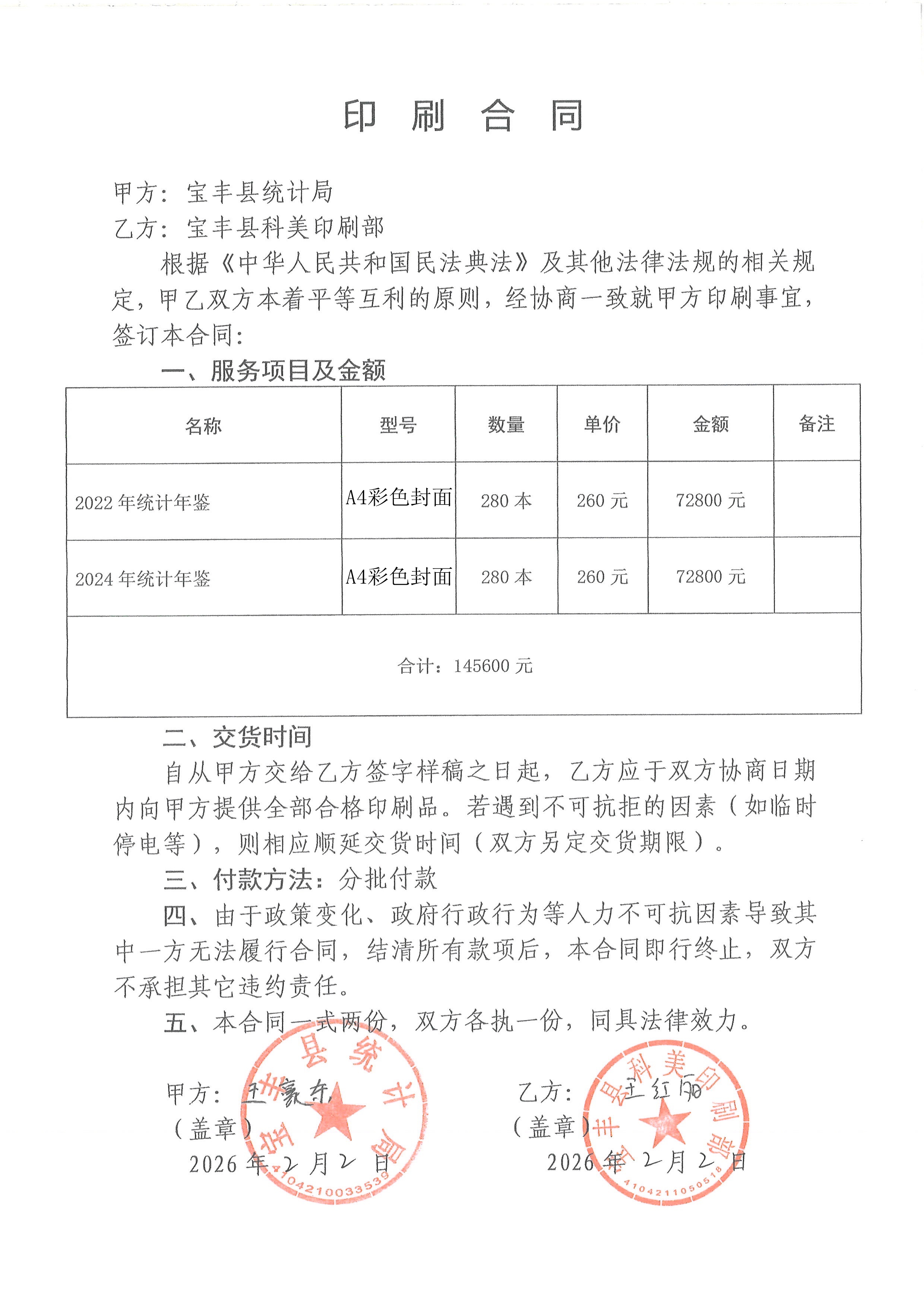| *.供应商(乙方):宝丰县科美印刷部 | ||||||||||||
