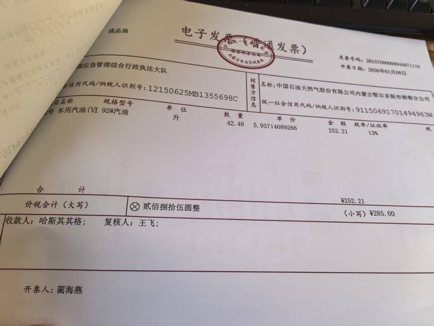 杭锦旗应急管理综合行政执法大队车辆加油政府采购合同公告